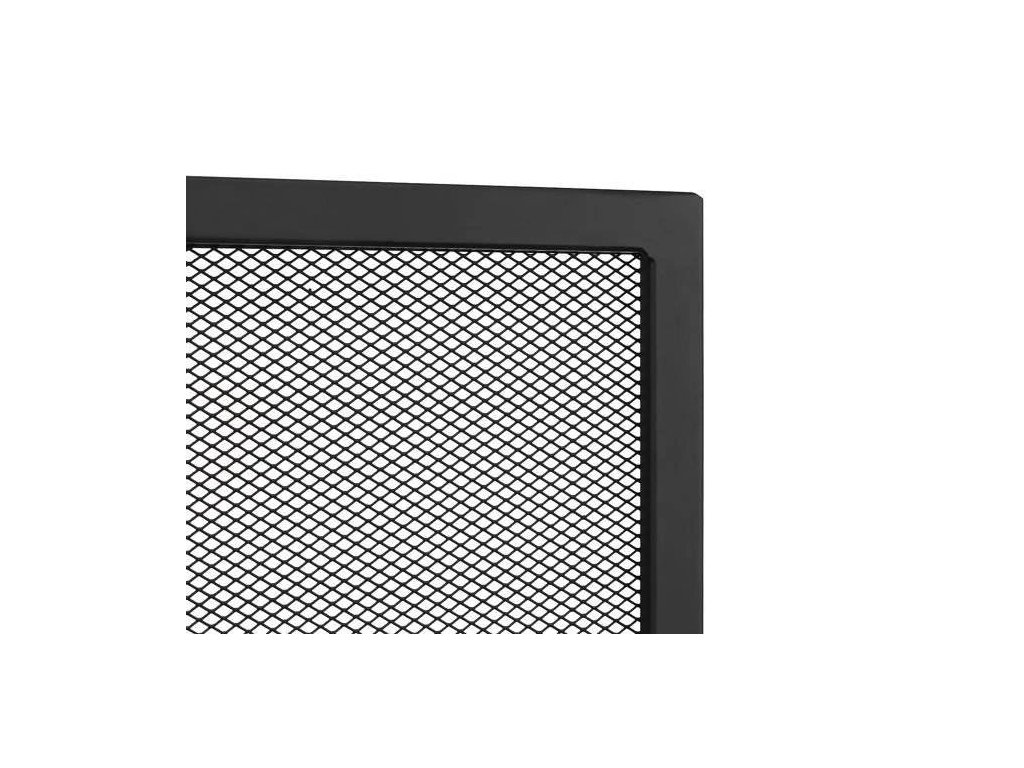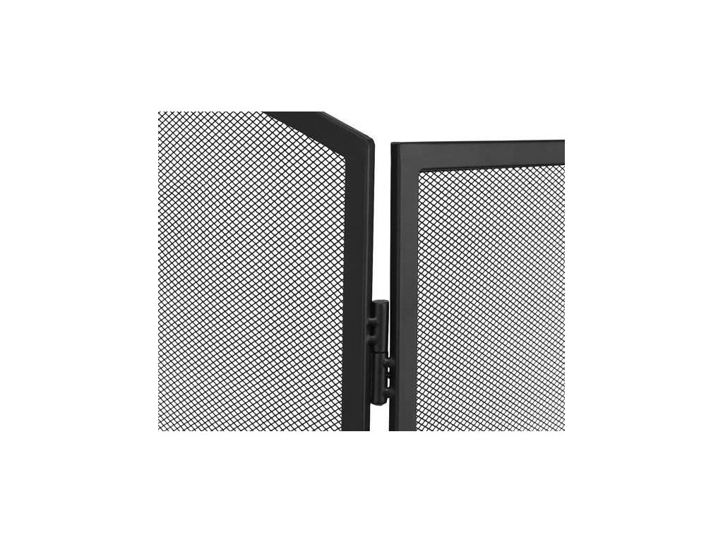 Ocelová zástěna ke krbu, radiátoru nebo kamnům, práškově lakovaná. Pevná síť chrání před jiskrami z krbu.
