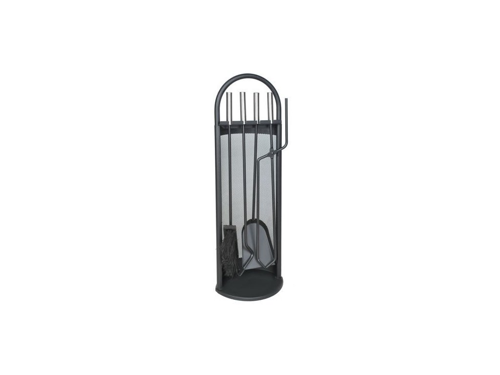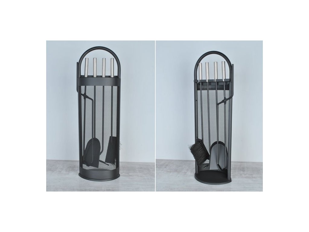 5-dílná sada krbového náčiní s moderním designem. Odolný, vyrobený z oceli a snadno se používá. Sada se snadno udržuje v čistotě díky stojánku vybavenému stojánkem, který udrží nečistoty a popel od nářadí a váš domov tak zůstane čistý. Kryt chrání příslušenství před jiskrami z krbu.