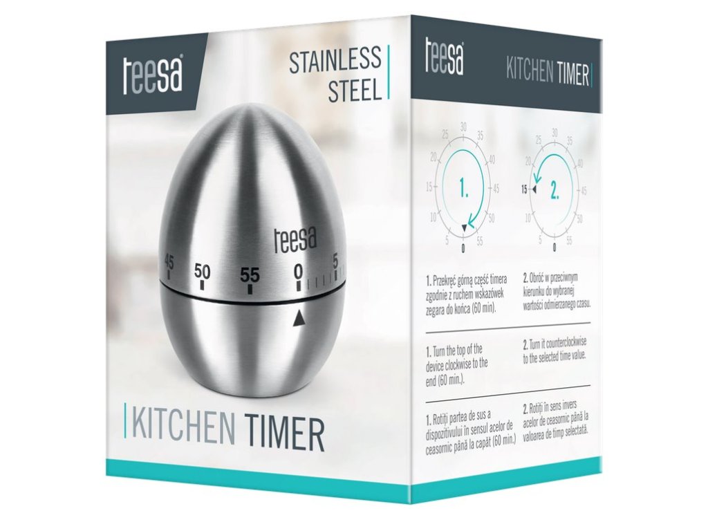 Zařízení Teesa umožňuje kontrolu času až do hodnoty šedesáti minut. Chcete-li nastavit časovač, otočte ho po směru hodinových ručiček na maximální hodnotu 60 min. Poté je třeba opačným směrem nastavit požadovaný čas, který má kuchyňský časovač odměřit.