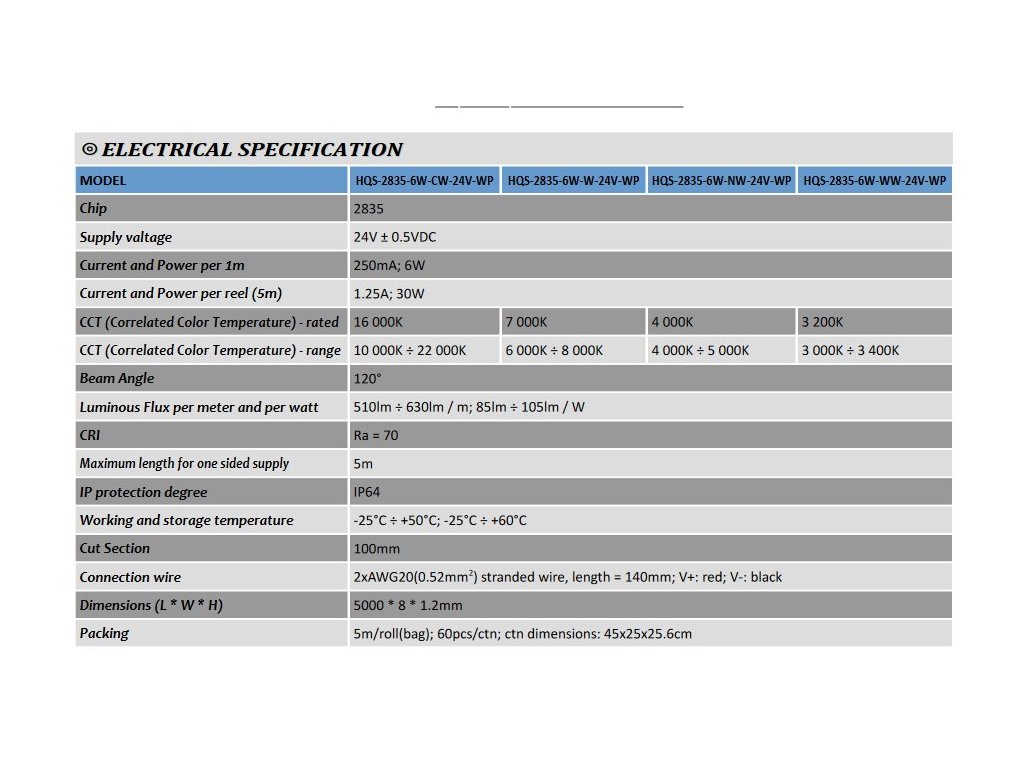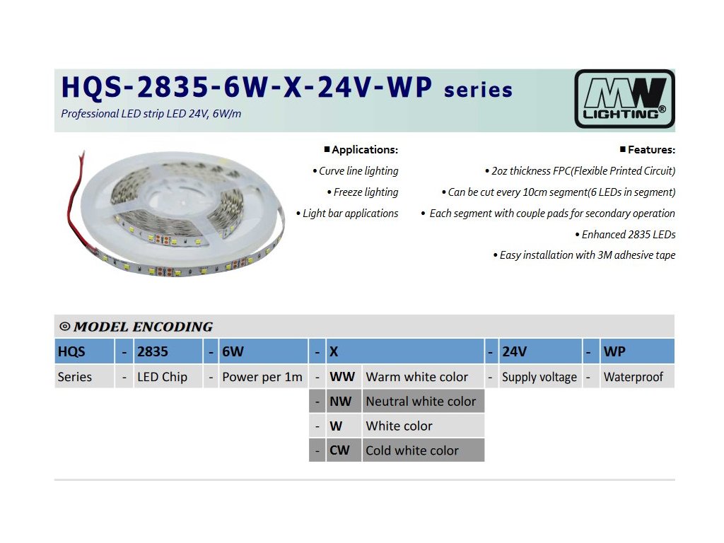 H2: Vlastnosti produktu LED pásek MW Lighting HQS-2835-6W-NW-24V