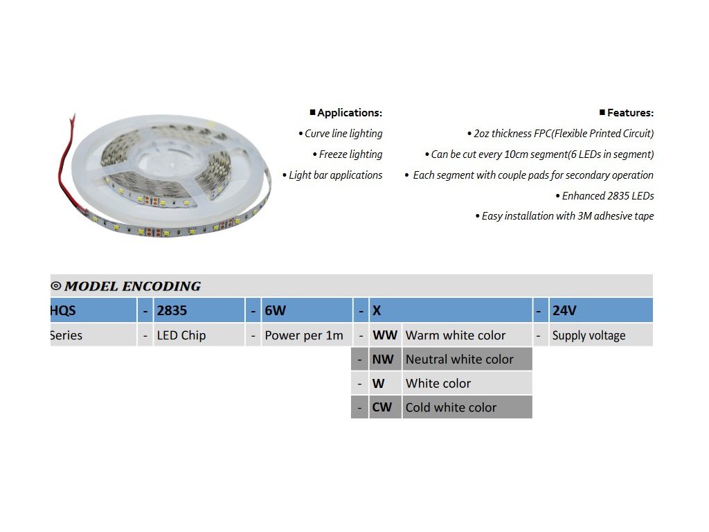 Vlastnosti LED pásku MW Lighting HQS-2835-6W-NW-24V
