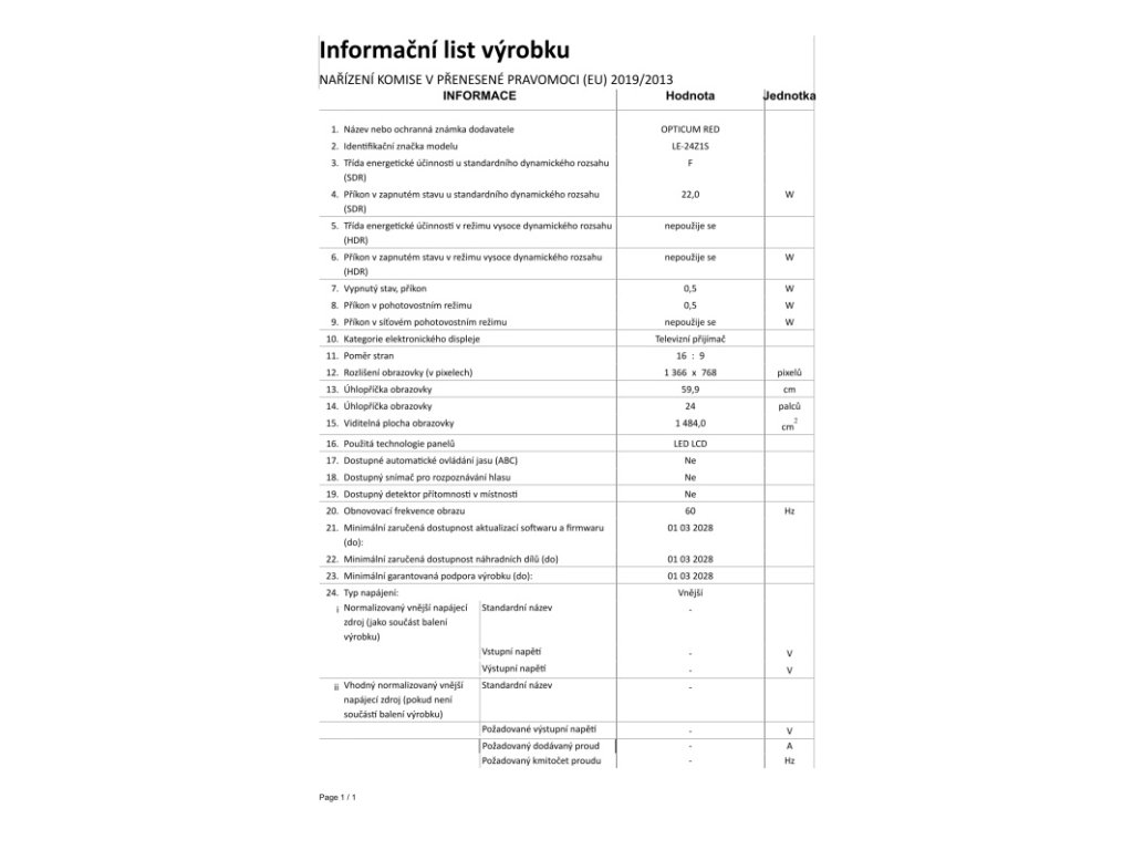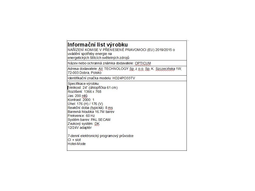 Vlastnosti produktu LED TV 24" OPTICUM LE-24Z1S TRAVEL