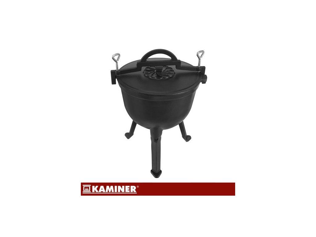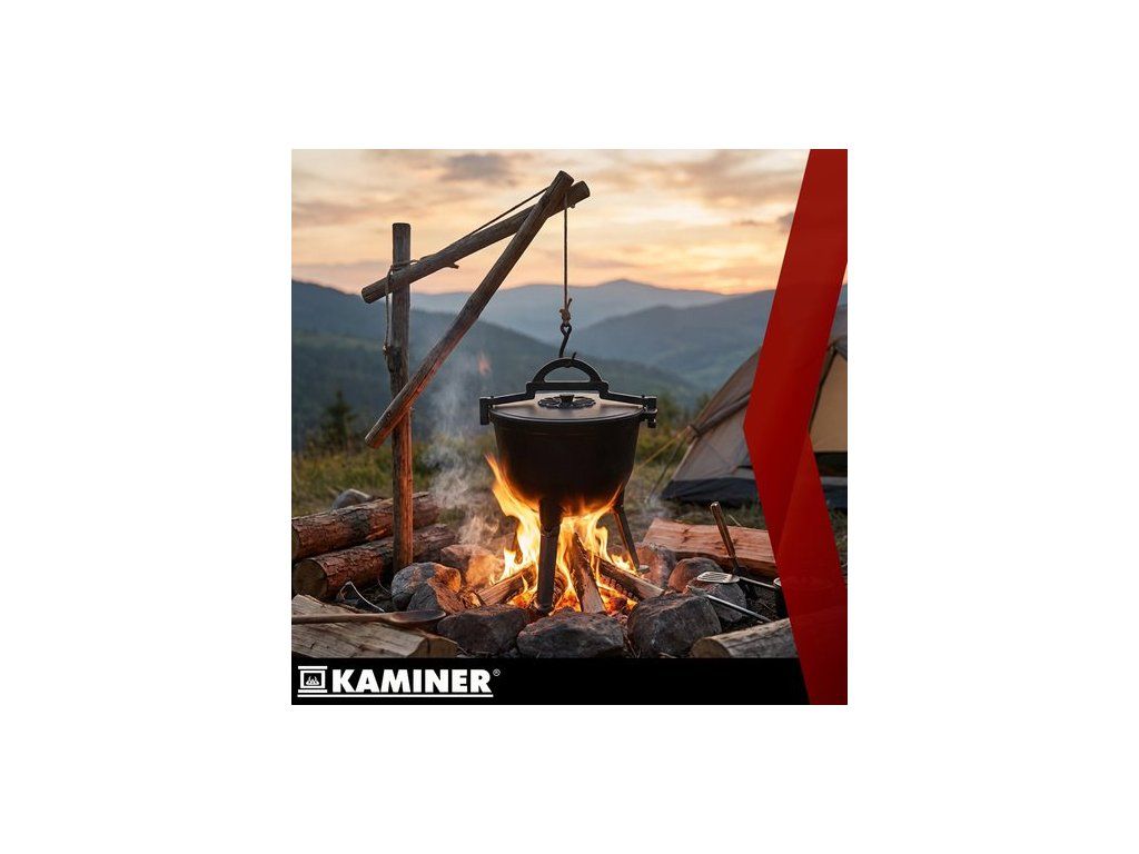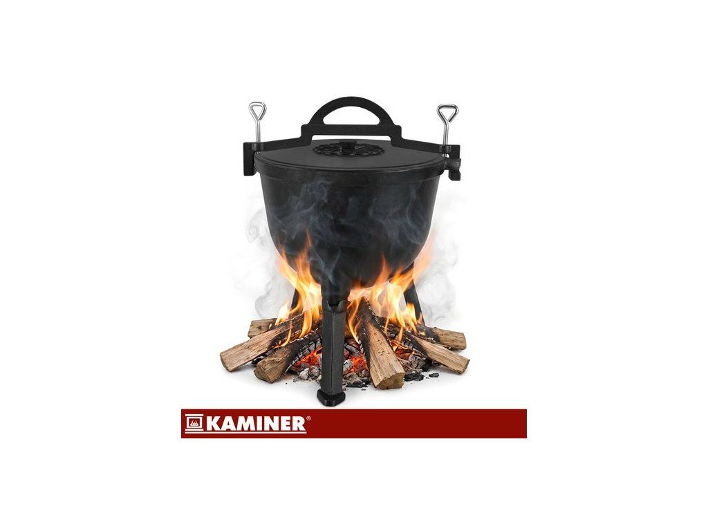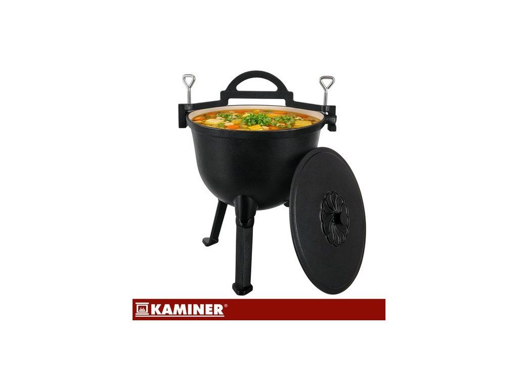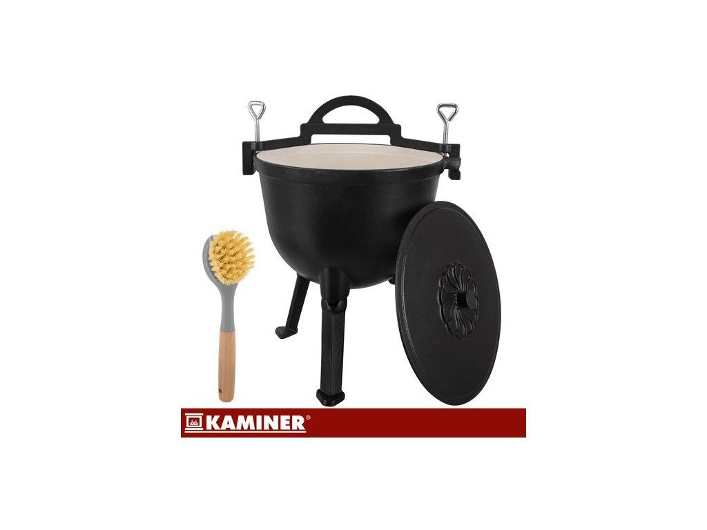 Litinový smaltovaný kotel Kaminer 10L na táborák s poklicí, nohou a kartáčem Už vás nebaví nerovnoměrné vaření v hrncích, které se připalují nad ohněm? Litinový kotel Kaminer o objemu 10 l se smaltovaným vnitřkem vám umožní připravovat vydatná jídla na táboráku, v krbu nebo nad uhlíky – pohodlně a bez neustálého čištění . Je to osvědčená volba pro kempování, zahradu a rodinné výlety.