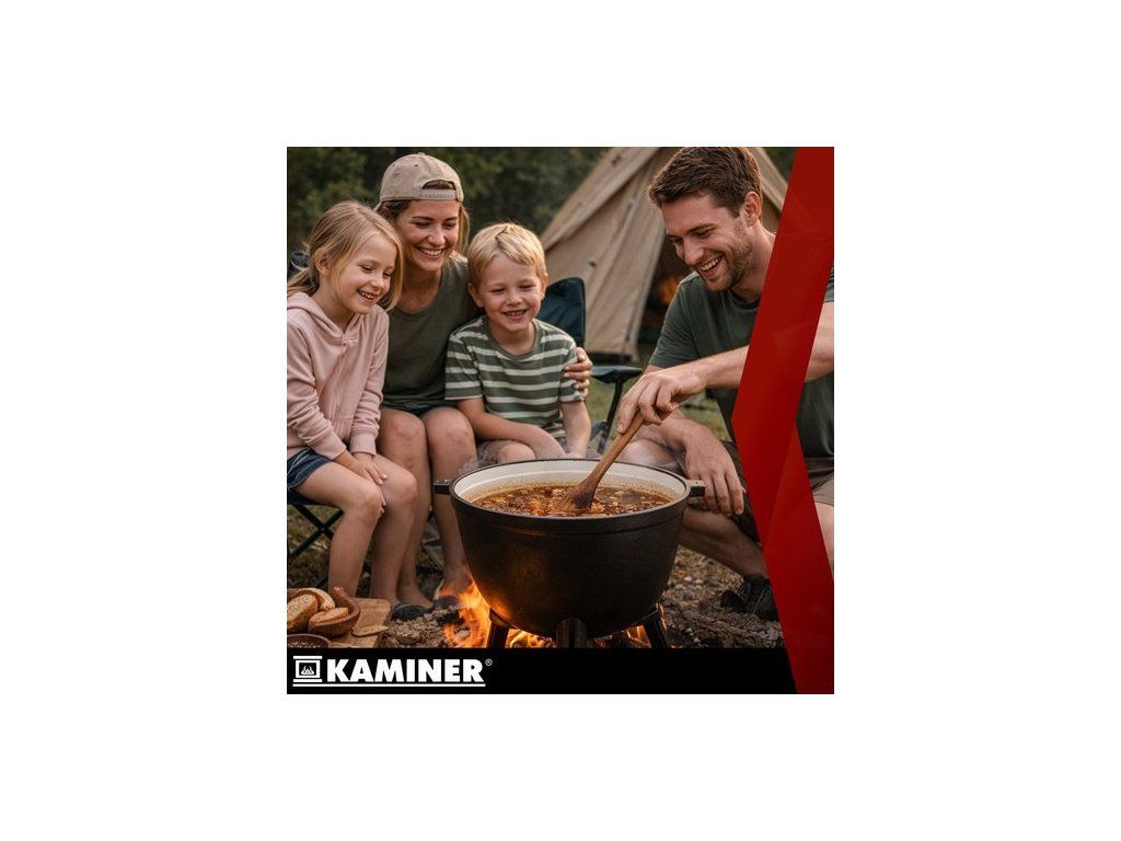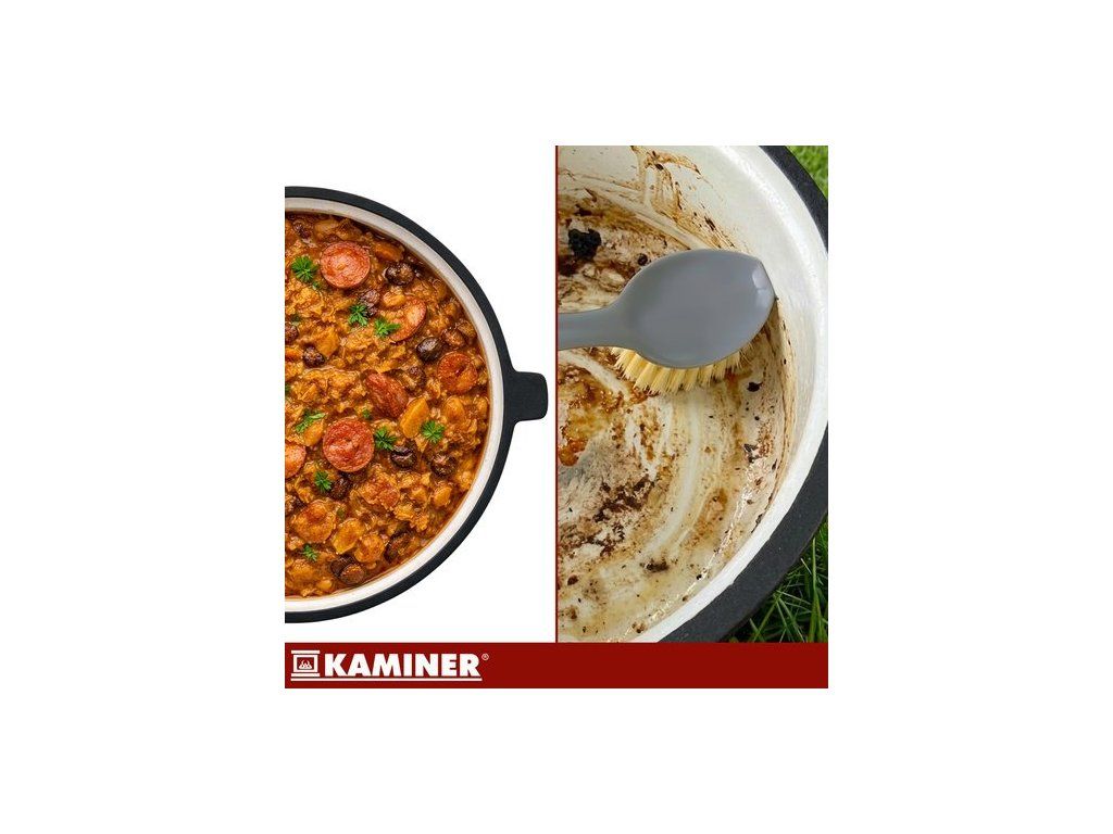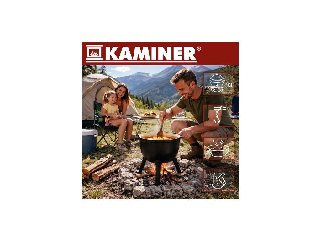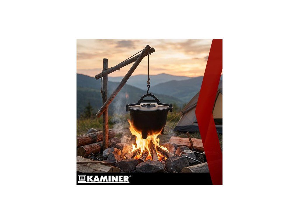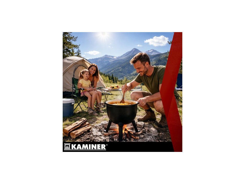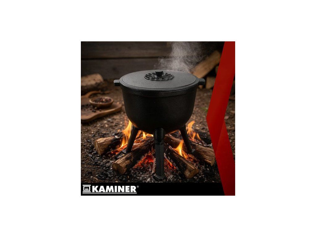 Litinový smaltovaný kotel Kaminer 10L na táborák s poklicí, nohou a kartáčem Už vás nebaví nerovnoměrné vaření v hrncích, které se připalují nad ohněm? Litinový kotel Kaminer o objemu 10 l se smaltovaným vnitřkem vám umožní připravovat vydatná jídla na táboráku, v krbu nebo nad uhlíky – pohodlně a bez neustálého čištění . Je to osvědčená volba pro kempování, zahradu a rodinné výlety.