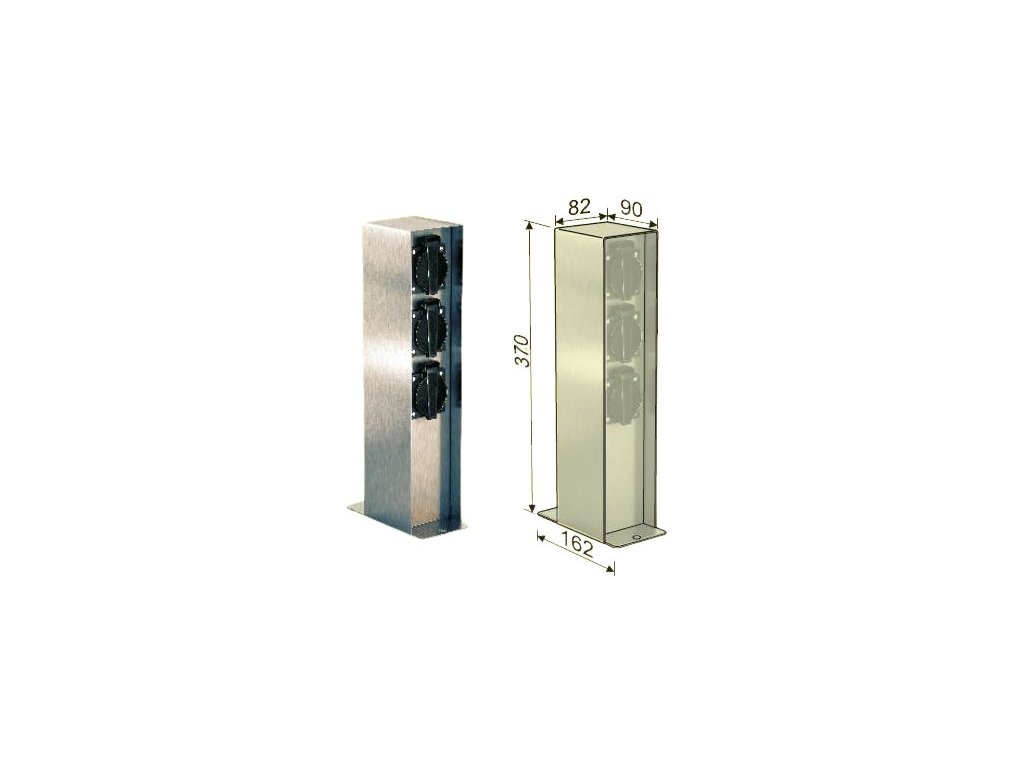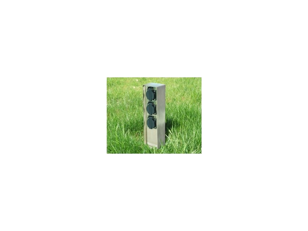 MCJ Nerezový zahradní sloupek, 3 zásuvky 230V/50Hz, IP44, 37 cm