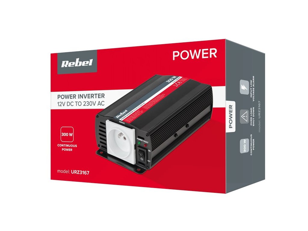 Měnič napětí 12/230V 300W, Rebel URZ3167