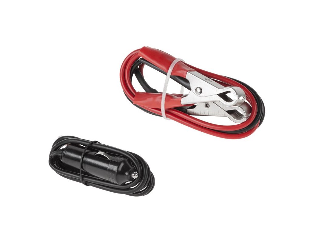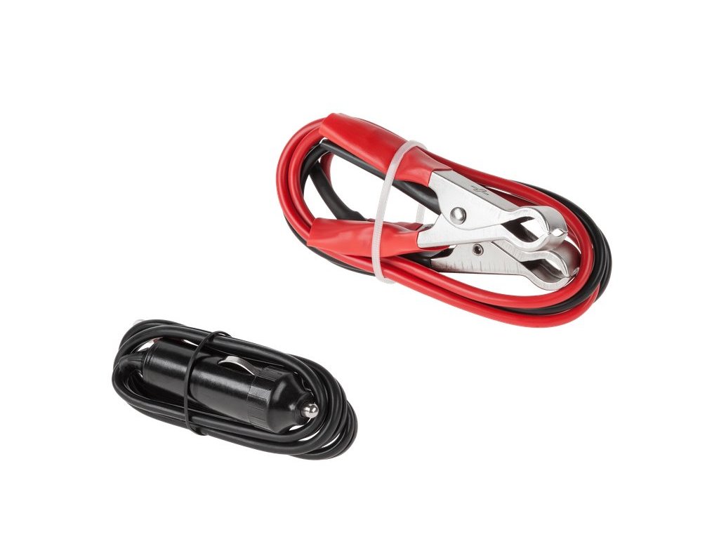 - Sada obsahuje: propojovací kabely s krokosvorkami a zástrčku do zapalovače