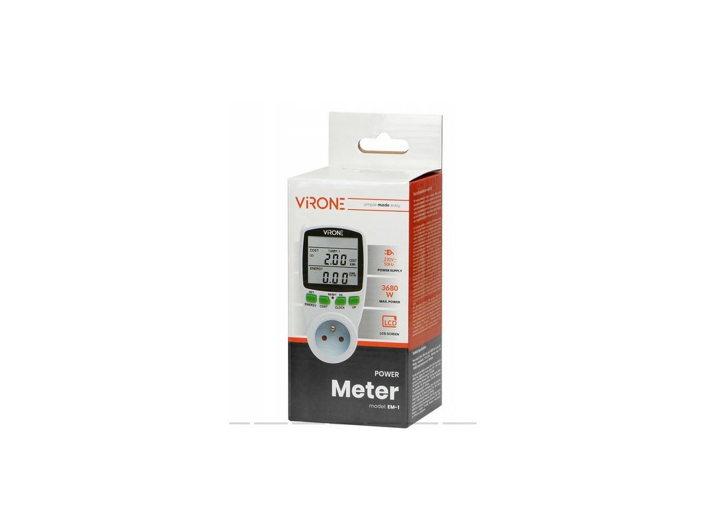 Hledáte způsob, jak efektivně sledovat svou spotřebu elektrické energie? Měřič spotřeby elektrické energie ORNO VIRONE EM-1 je ideální volbou pro každého, kdo chce mít přehled o nákladech na elektrickou energii připojených zařízení. Tento praktický wattmetr nabízí širokou škálu funkcí, včetně velkého LCD displeje, který zajišťuje snadné ovládání a čitelnost naměřených hodnot. Díky interní dobíjecí baterii zůstává nastavení zachováno i při výpadku proudu, což zajišťuje bezproblémové používání v jakékoli situaci.