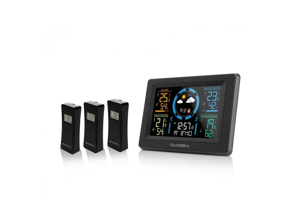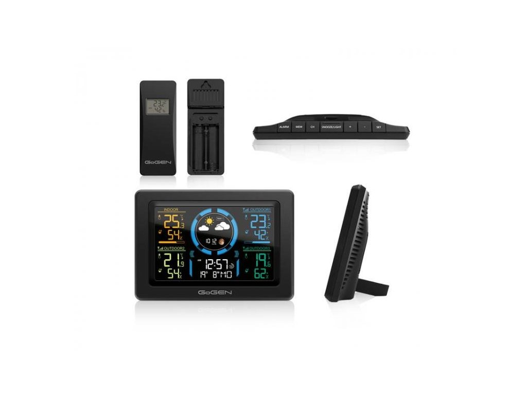 Meteostanice Gogen ME3397B s barevným displejem, černá, 3 čidla
