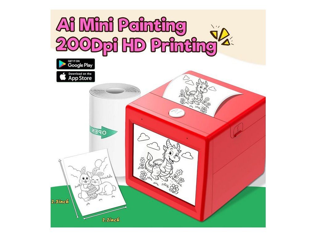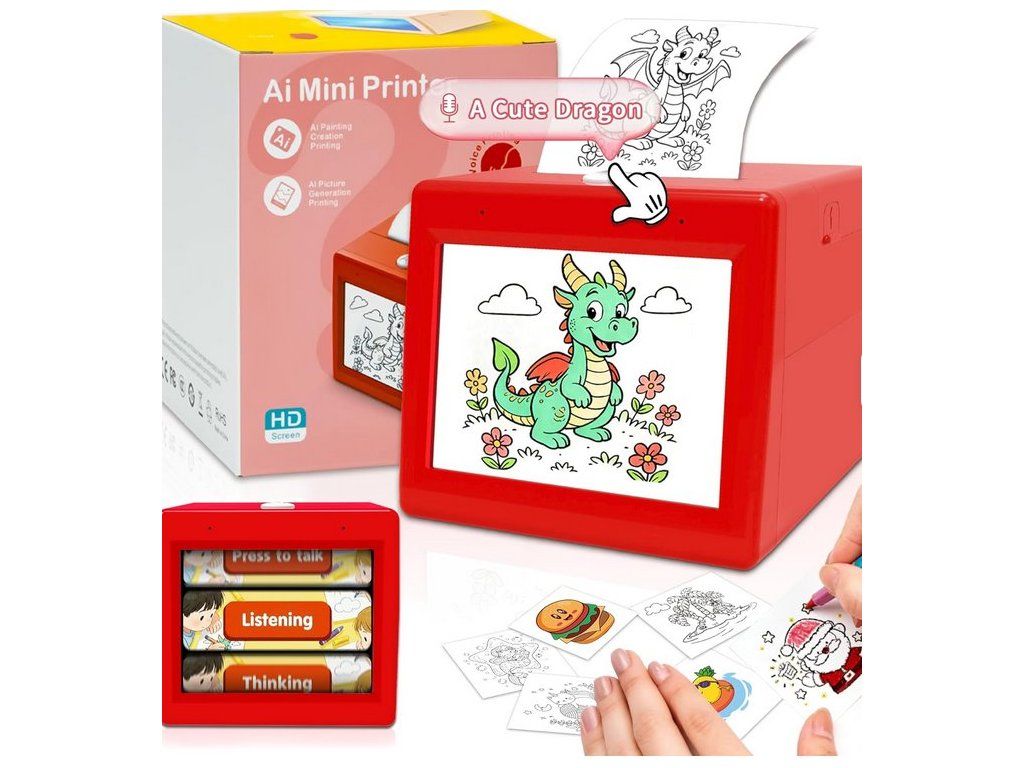 1. Tato přenosná mini tiskárna s AI je speciálně navržena pro děti a stimuluje kreativitu prostřednictvím hlasové interakce a technologie AI. Děti mohou generovat černobílé obrázky pomocí hlasových popisů pro okamžitý tisk, vhodné pro kreslení nebo sbírání.