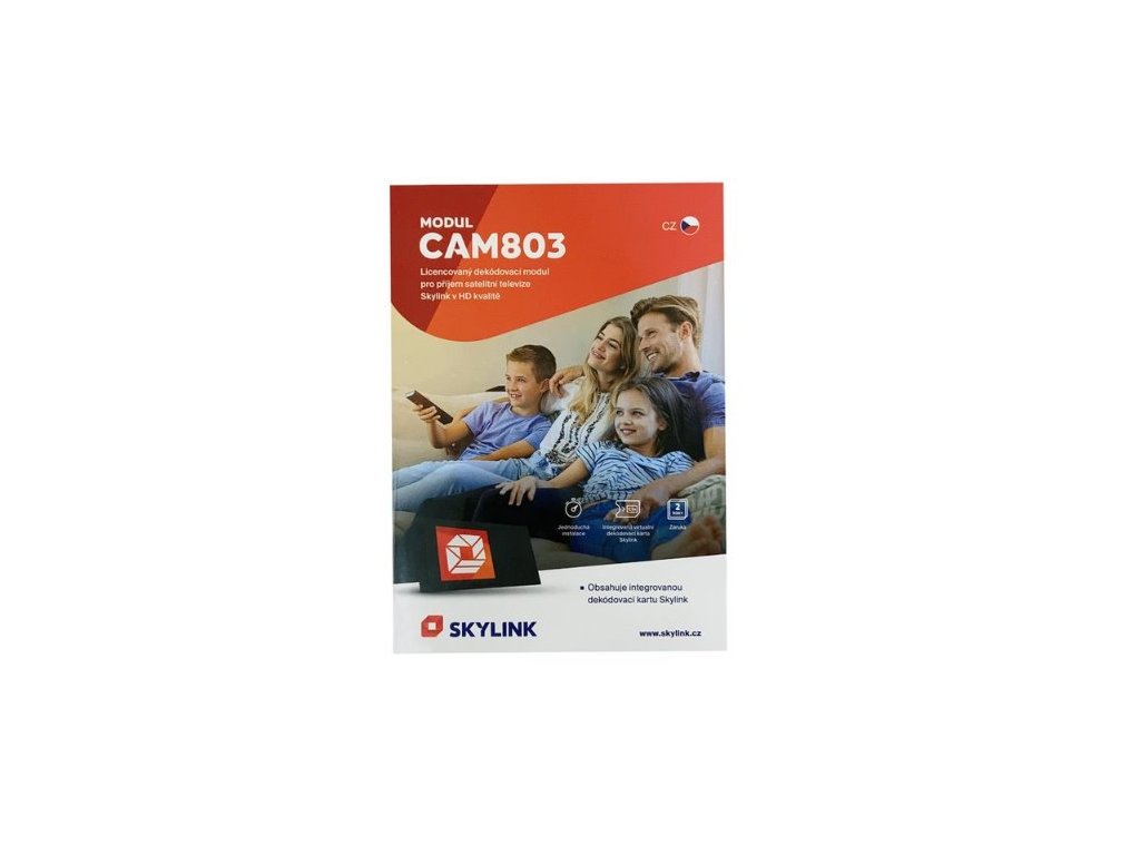 Dekódovací modul CAM 803 s již integrovanou satelitní kartou Skylink (typ Nagravision). Tuto kartu nelze z modulu vyjmout. Pro plnou funkčnost je nutné modul registrovat v zákaznickém systému Skylink. Integrovanou satelitní kartu Skylink můžete registrovat jako novou kartu, jako náhradu za původní dekódovací kartu typu Irdeto nebo jako kartu NEXT.