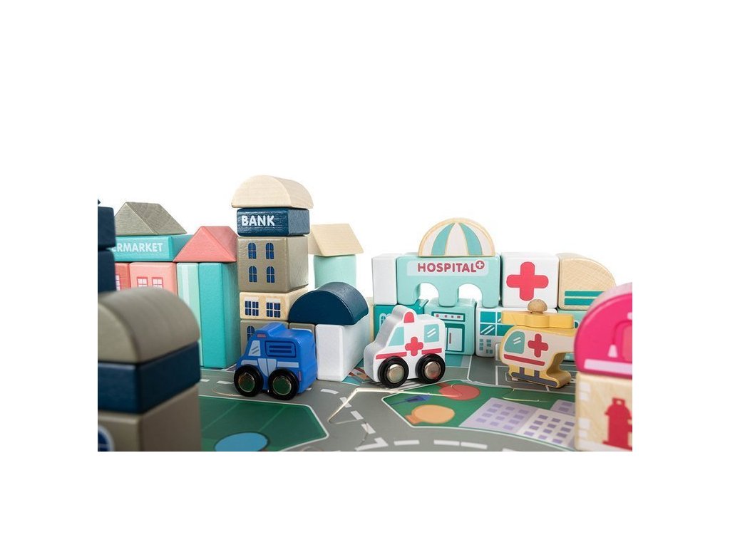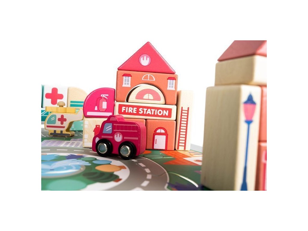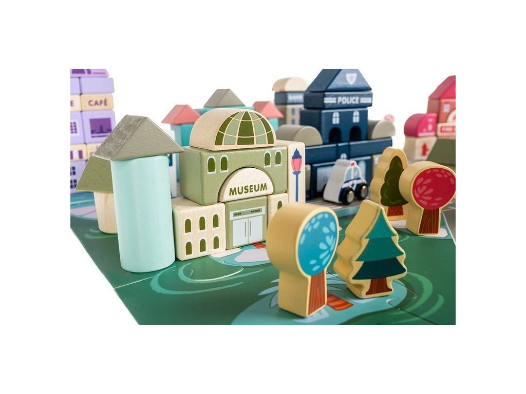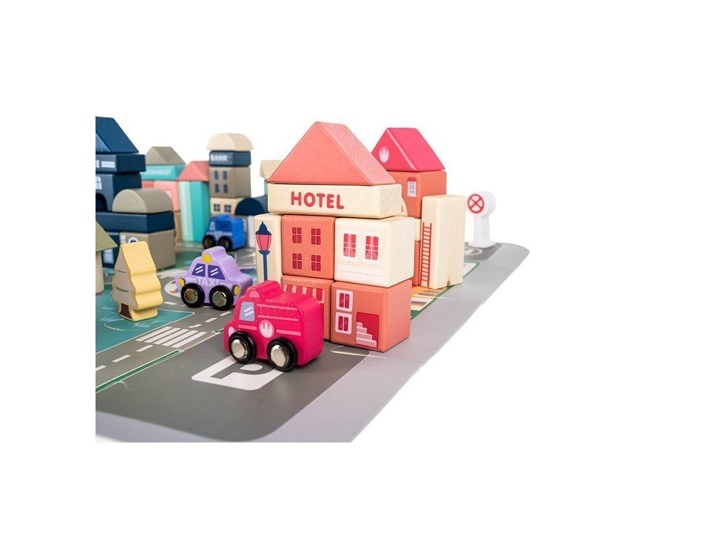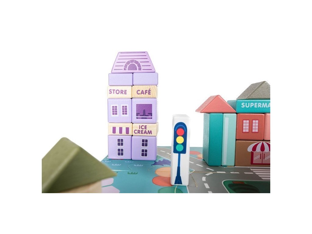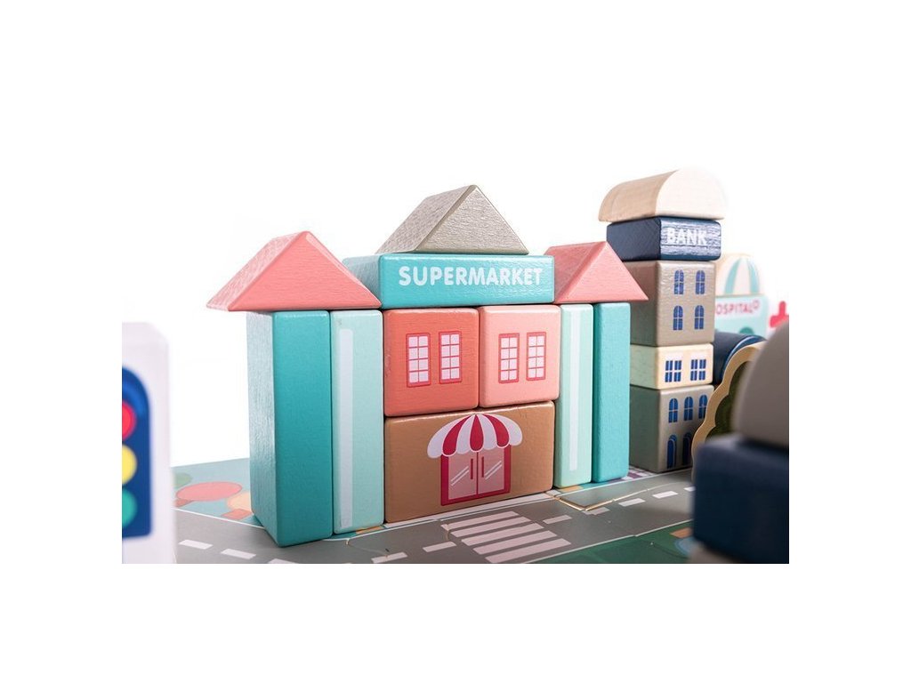 Montessori dřevěné kostky s podložkou - město ISO 11228