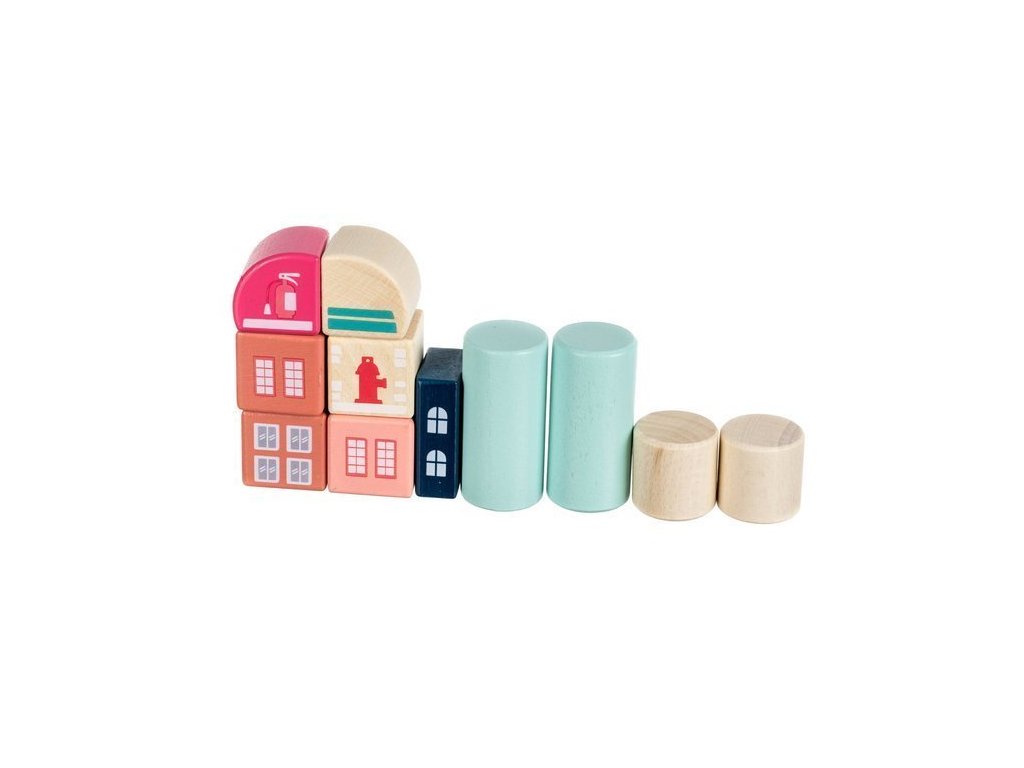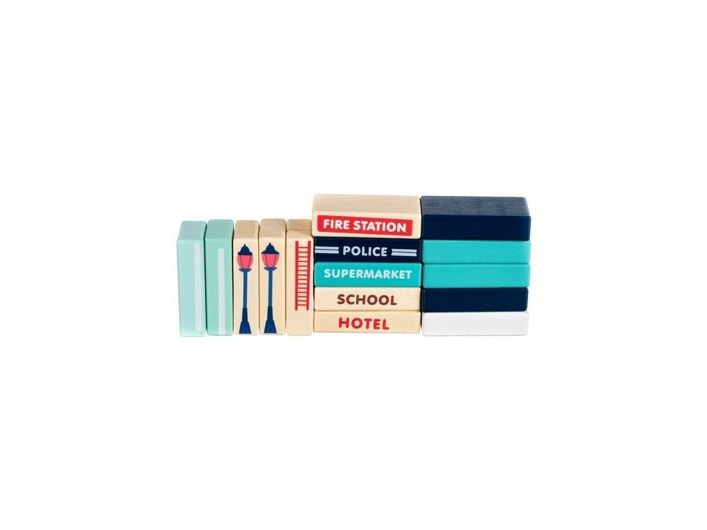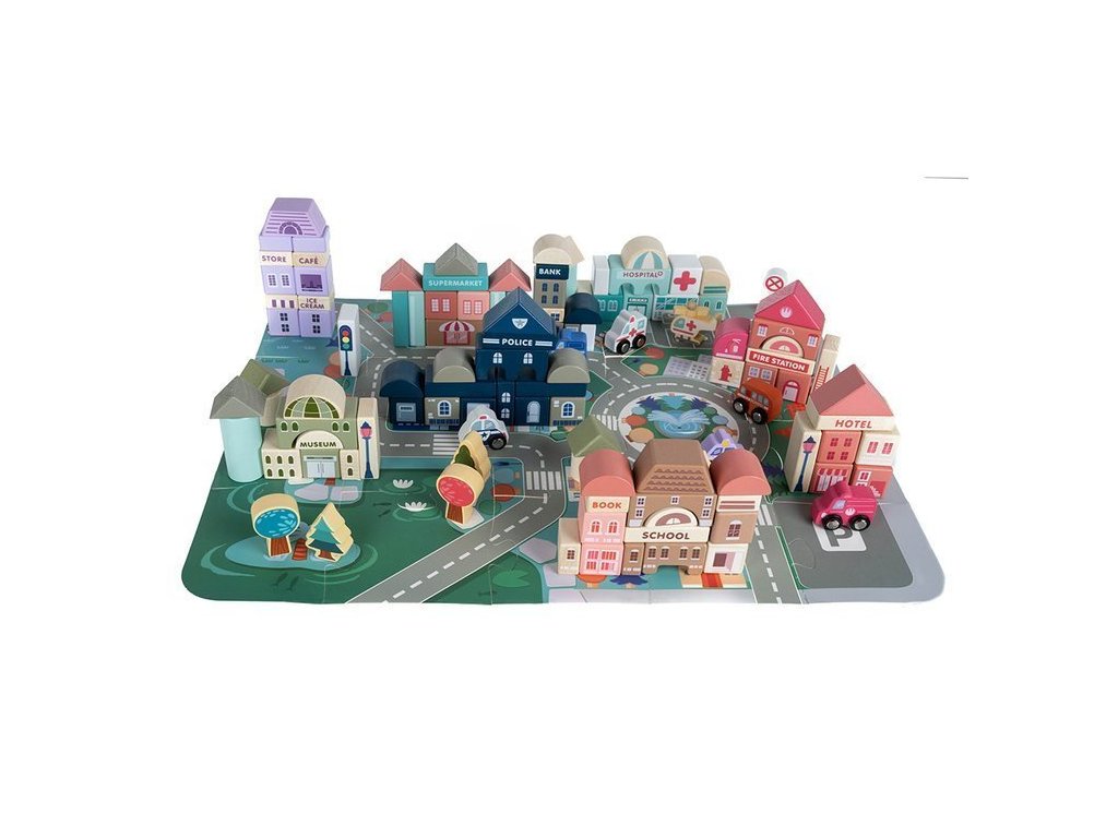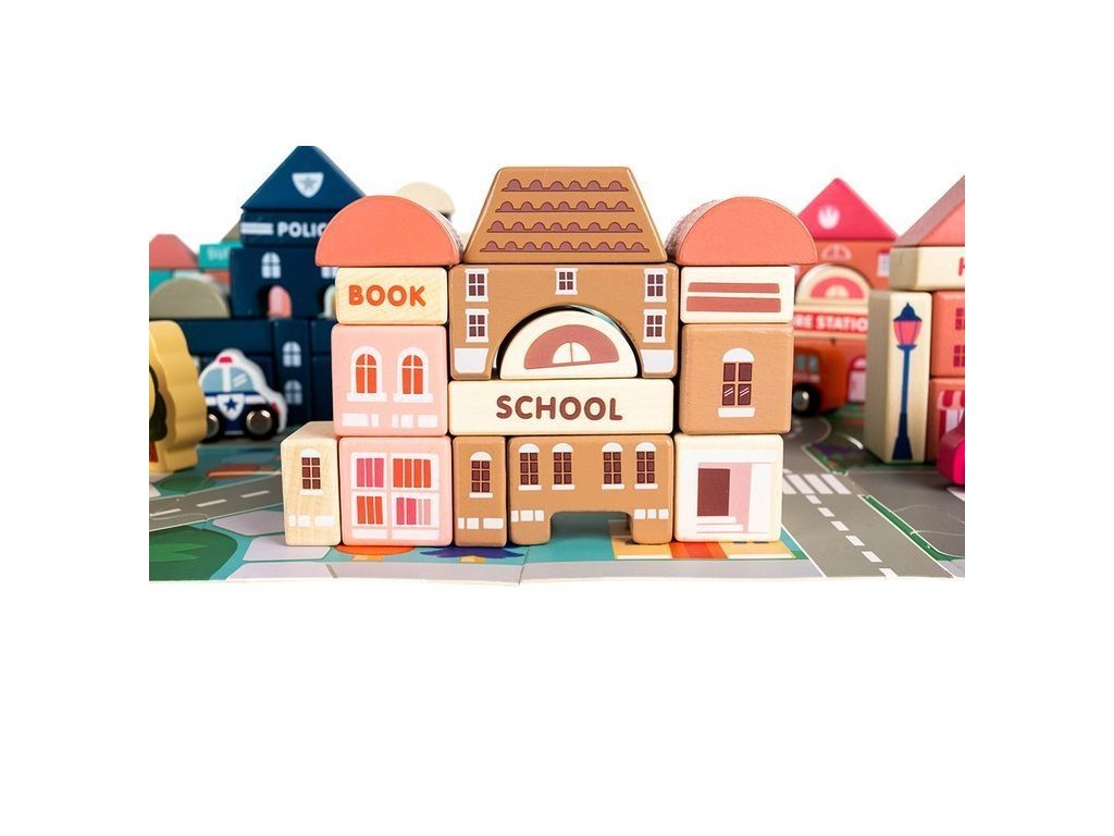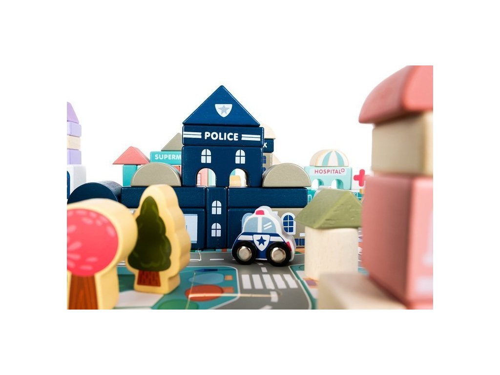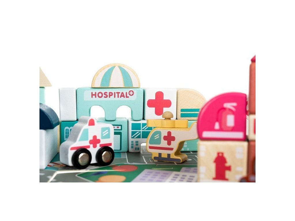 Montessori dřevěné kostky s podložkou - město ISO 11228