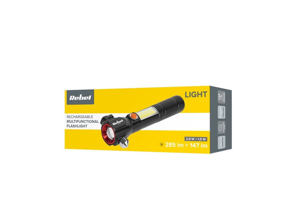 Multifunkční nabíjecí svítilna REBEL URZ0941 s kladívkem