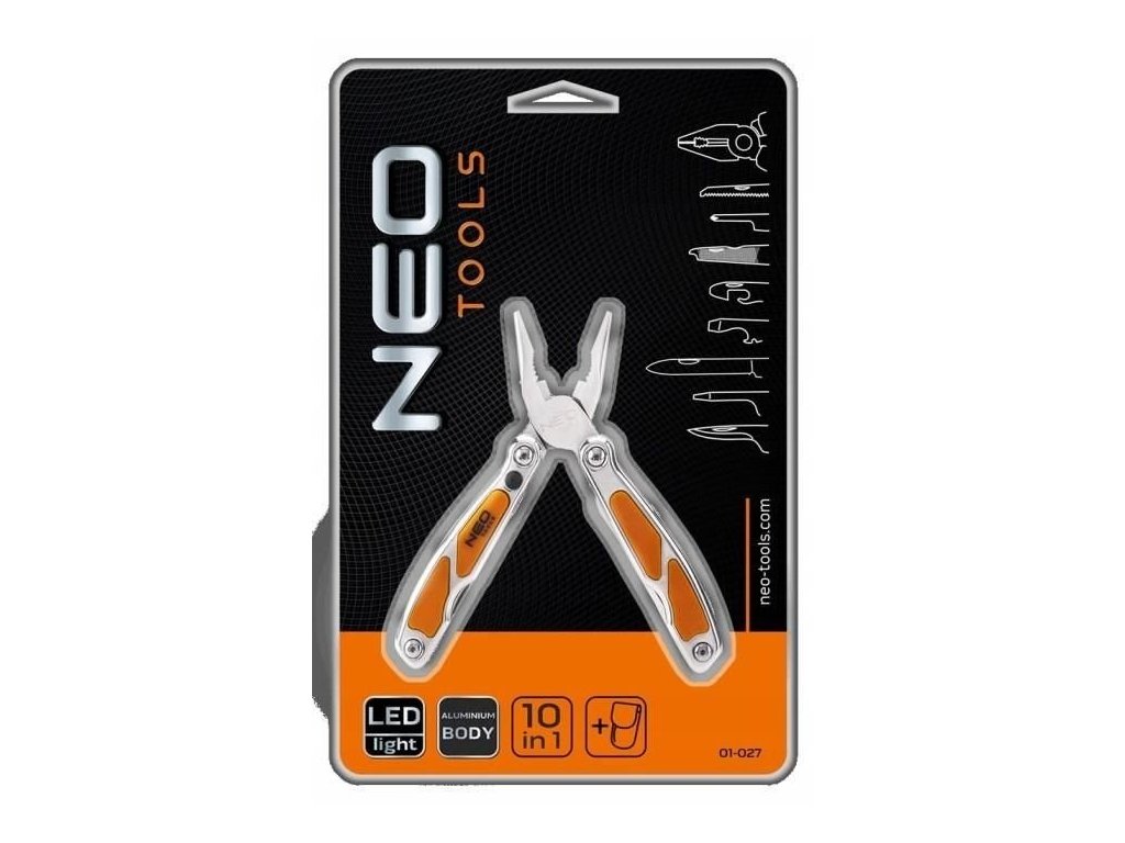 Multifunkční nářadí NEO Multitool nabízí 10 funkcí, včetně LED osvětlení, ideální pro kempování i domácí údržbu. Kompaktní design a odolné nylonové pouzdro zaručují snadnou přenosnost a skladování.