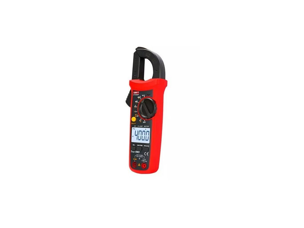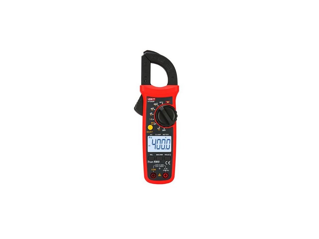 Multimetr UNI-T UT202R klešťový je ideální pro měření napětí do 600V a AC proudy až 400A. S funkcí bezkontaktního snímání elektrického pole a podsvíceným displejem je skvělým pomocníkem pro profesionály i domácí kutily.