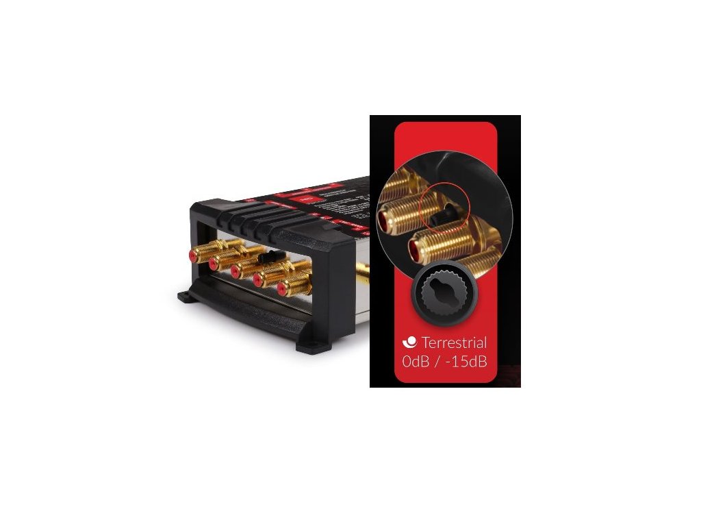 Multiswitch Opticum OMS 5/4 PRO-TRQ Platinum Line je ideální pro rozšíření vaší satelitní televize s podporou až 4 satelitních přijímačů a pozemního DVB-T2 signálu.