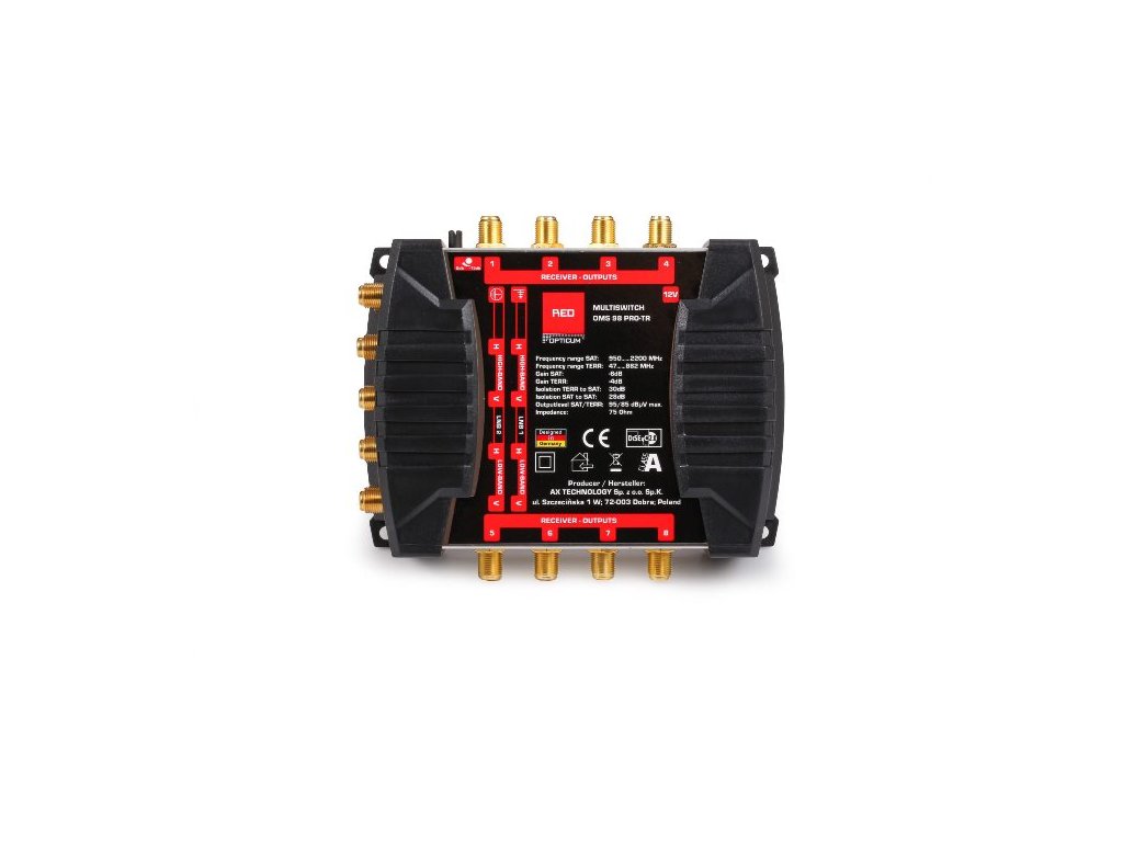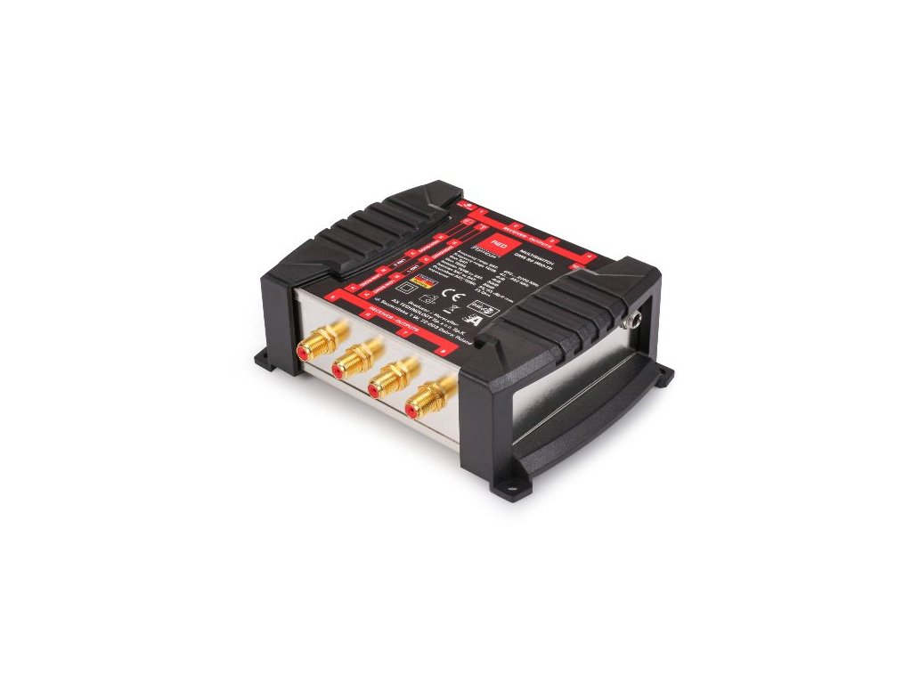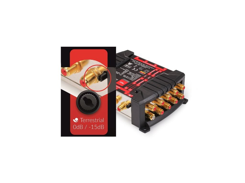 Oddělení satelitních a pozemních signálů se provádí pomocí soketů koncových odběratelů, což zajišťuje čistý a stabilní příjem. Multipřepínač je napájen z externího zdroje, což eliminuje riziko zvýšené provozní teploty, která je častou příčinou poškození zařízení.