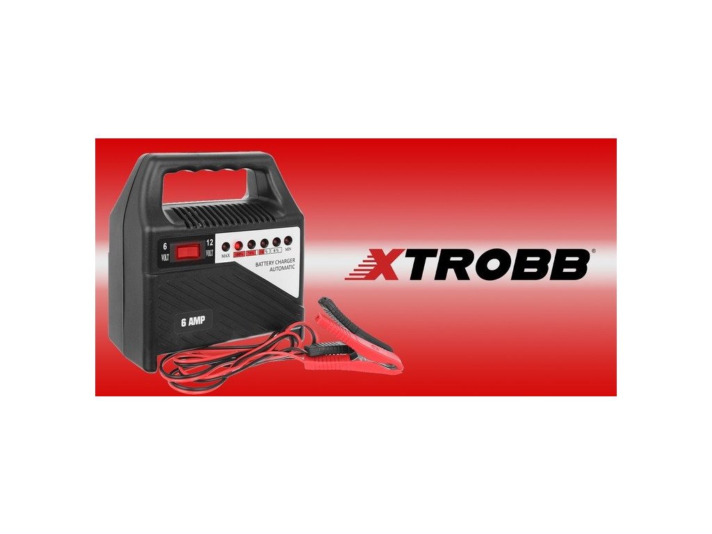 Nabíječka autobaterií 6/12V - 6 A Xtrobb 11050 zajišťuje efektivní nabíjení pro baterie 20-65Ah. Kompaktní design a přepínač pro 6V/12V ji činí ideální pro každého motoristu.