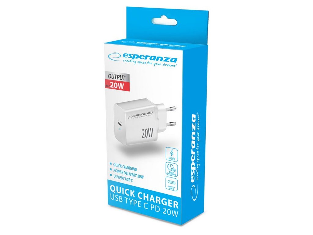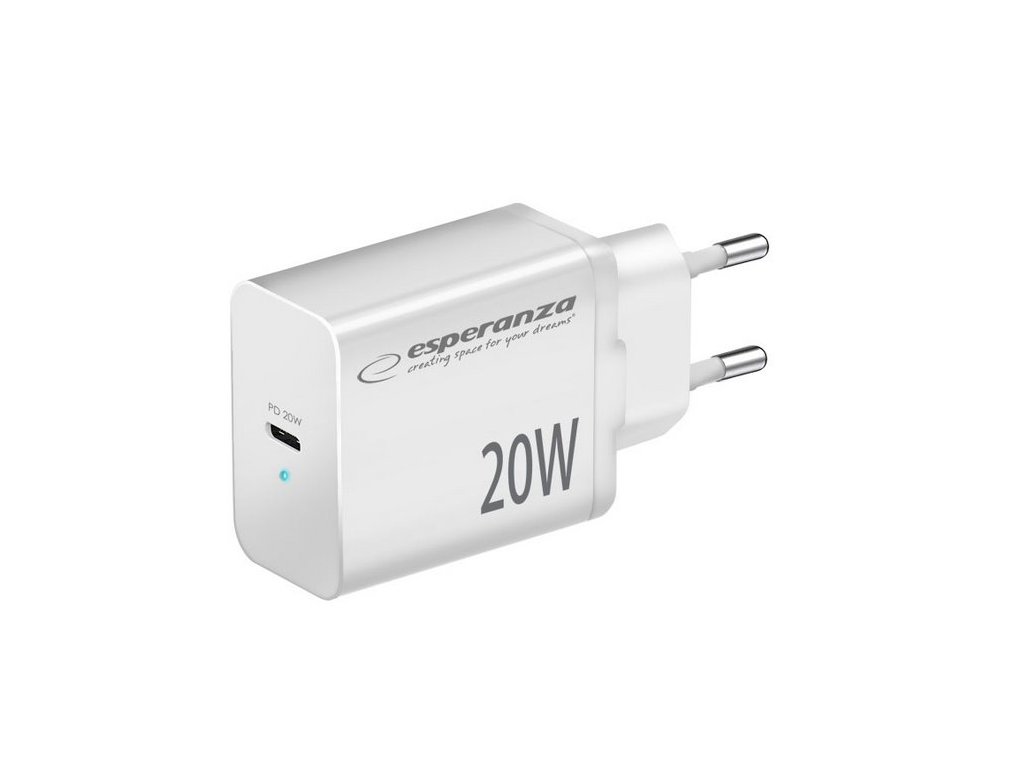 Nabíječka Esperanza EZC104W 20W USB-C PD, bílá