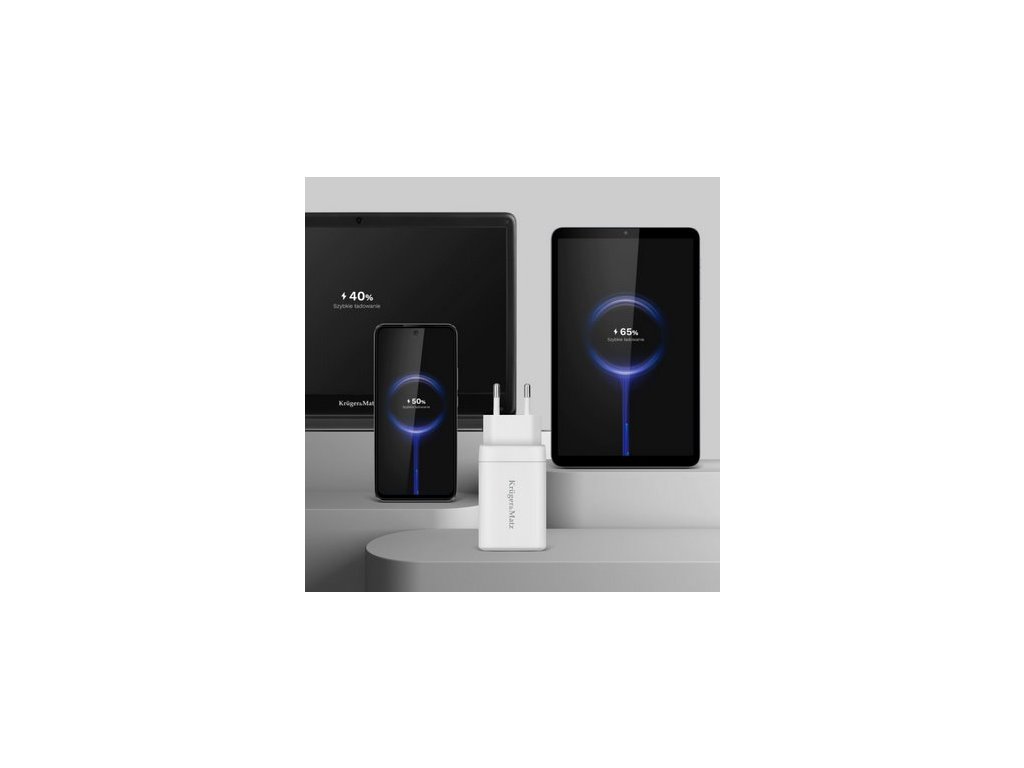 Nabíječka USB KRUGER & MATZ KM0856 GaN 45W nabízí rychlé nabíjení s výkonem až 45W díky technologii GaN a automatické detekci zařízení.