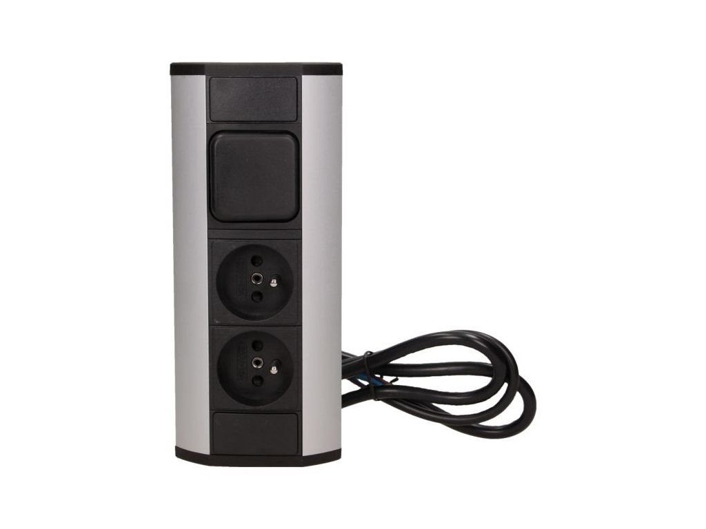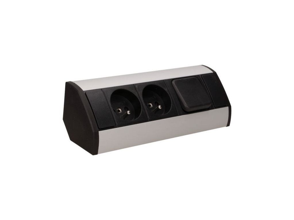 Nábytková zásuvka s vypínačem ORNO OR-GM-9002/B-G, rohové pouzdro, barva černo-stříbrná