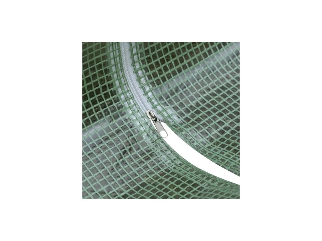 Silná a pevná fólie je vyrobena z PE se síťovinou. Je určena pro zahradní tunel o rozměrech 2 x 2 x 2 m. Instalace je velmi snadná, fóliový potah je třeba co nejtěsněji přichytit k ocelovému rámu, čímž se eliminují negativní účinky silného větru, deště a slunce. Fólie pro tunel má dva pevné zipy. Vchod je také možné sklopit a upevnit pomocí karabiny. Boční okna jsou vybavena moskytiérou, která zajišťuje správnou vlhkost a cirkulaci vzduchu v tunelu. Boční přírubu pro stabilizaci je třeba zasypat zeminou nebo vyložit kameny. Tím bude tunel chráněn před větrem, který fólii rozfoukává. Zahradnický fóliový tunel prodlužuje vegetační období zeleniny od předjaří do pozdního podzimu. Poskytuje vynikající výsledky při pěstování teplomilné zeleniny, jako jsou rajčata. Praktické a levné řešení pro použití v domácích zahradách.