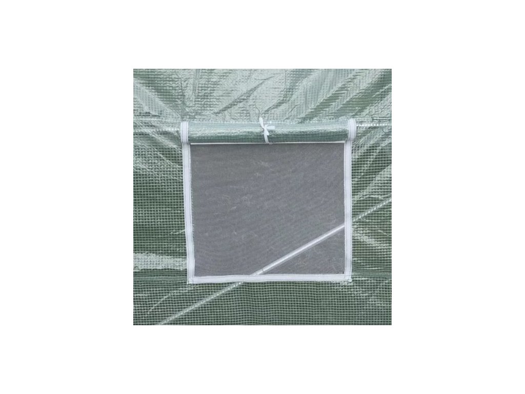 ZÁMEK FLASH + OKNA S MOSKYTIÉROU - zámek umožňuje rychlé a snadné otevírání i zavírání - bez ohledu na to, zda se nacházíte uvnitř nebo vně tunelu. Po odjištění zámku a vyklopení dvířek lze fólii nahoře připevnit pomocí zaklapnutí. Okénka zajišťují dostatečné proudění vzduchu a regulují teplotu a vlhkost uvnitř fólie.
