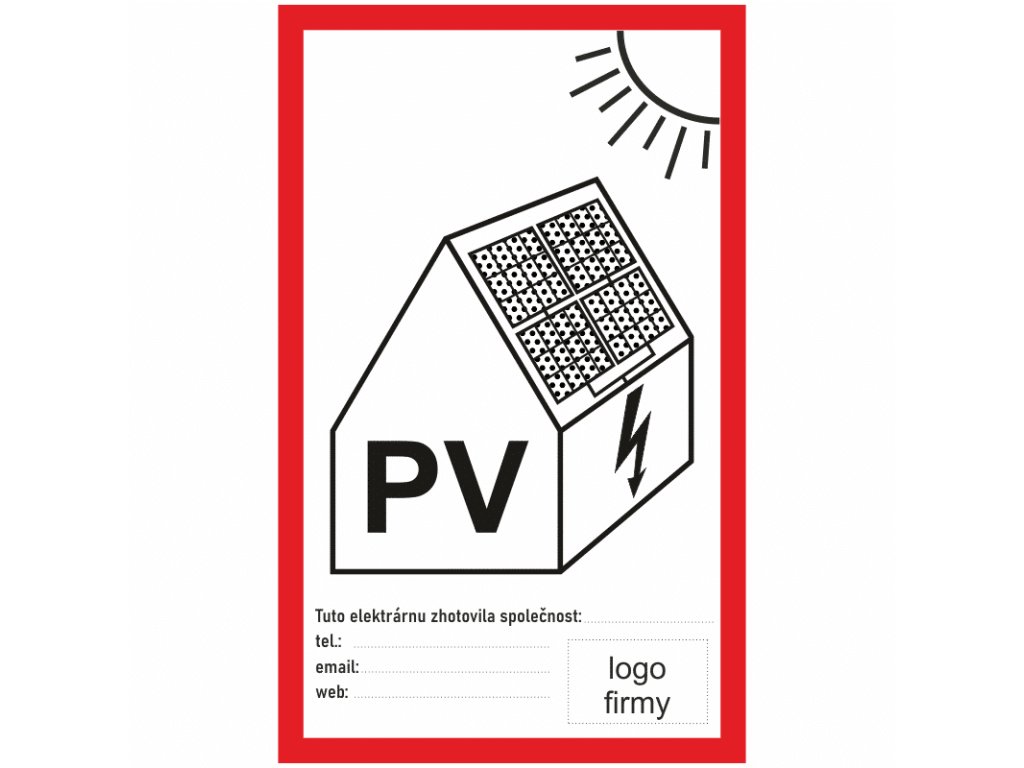 Nálepka "PV symbol na fotovoltaiku" je ideálním řešením pro označení solárních panelů s možností doplnění loga vaší firmy. Je vyrobena z kvalitního materiálu a splňuje normy pro fotovoltaické systémy.
