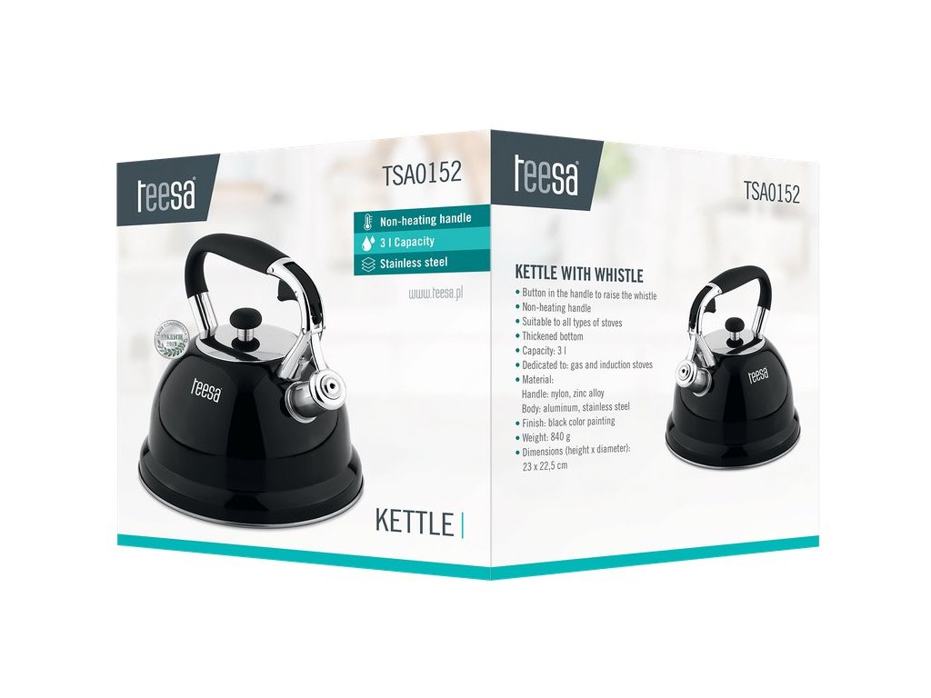 Nerezová konvice s píšťalkou 3L TEESA TSA0152, černá