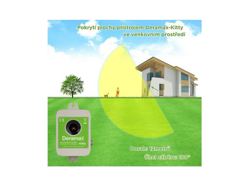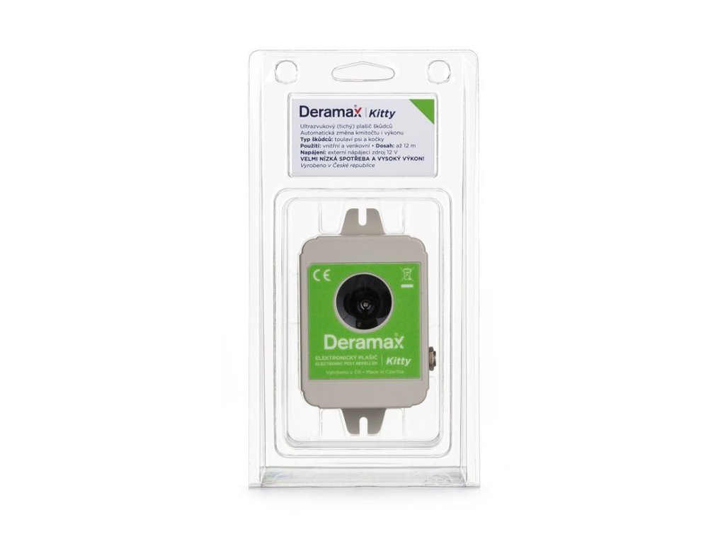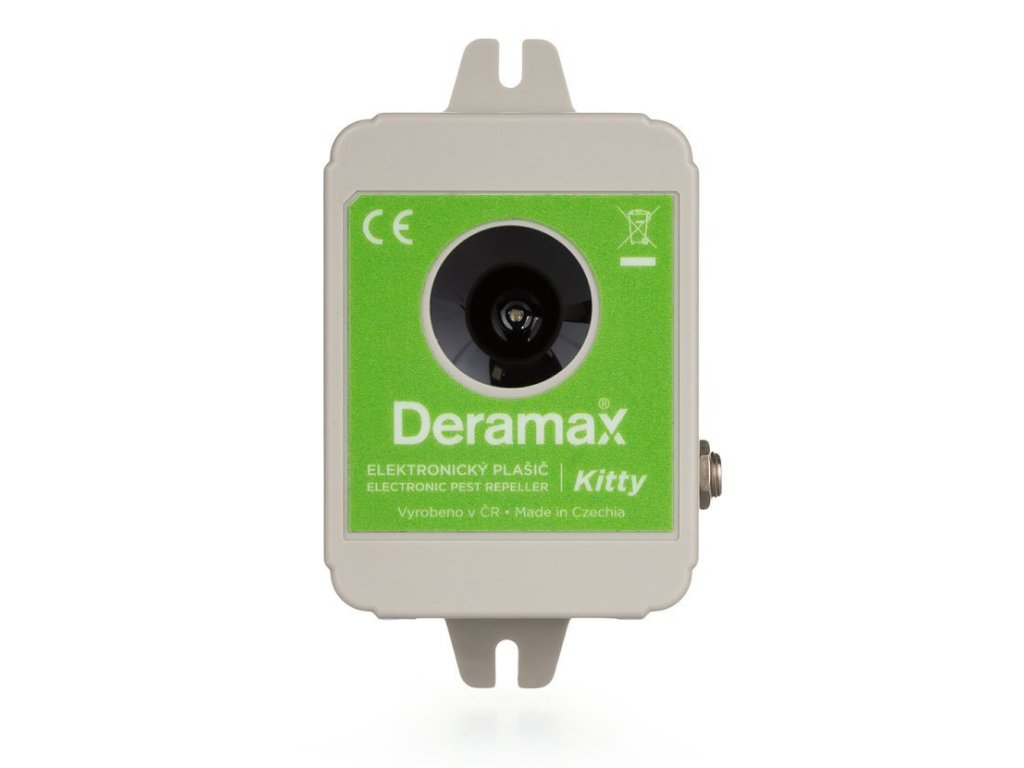 Ultrazvukový plašič (odpuzovač) Deramax-Kitty je elektronické zařízení, které slouží k ochraně venkovních prostor před toulavými kočkami, psy a divokou zvěří. Škůdci jsou trvale obtěžováni ultrazvukovými signály plašiče a v krátkém čase opouští chráněný prostor. Deramax-Kitty pracuje v kmitočtové oblasti, která je pro člověka za hranicí slyšitelnosti, proto neruší a neobtěžuje své okolí nepříjemným hlukem. Provoz přístroje je zcela ekologický, bez využití chemických prostředků.