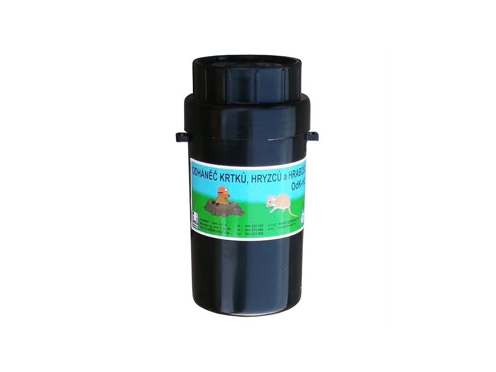 Akustický elektronický odháněč krtků, hryzců a hrabošů. Jedná se o ryze český produkt s dlouholetou tradicí na trhu (od r. 1991) vyráběný přímo u nás ve firmě FORMAT1 spol. s r. o. Verze OdKH2 je druhým, vylepšeným modelem oblíbené řady OdKH. Velmi spolehlivý, výkonný, za dobu více jak 29 let ověřený mnoha zákazníky. Neškodný jak pro člověka a domácí hospodářská zvířata.