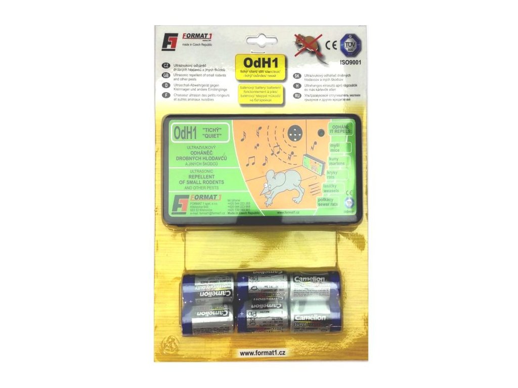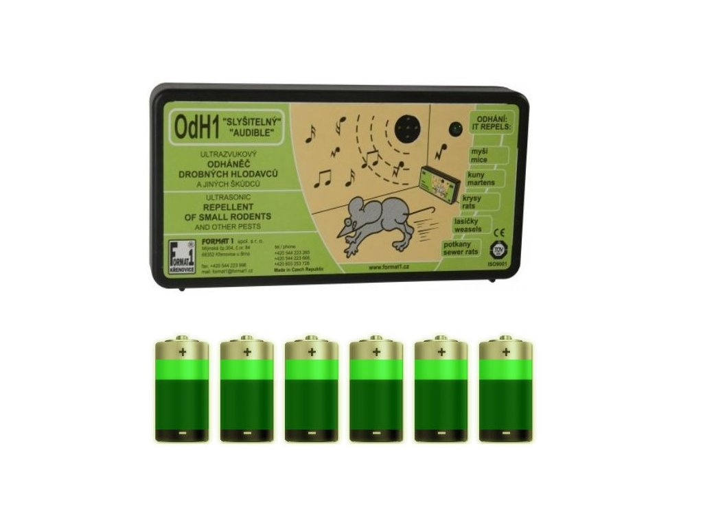 Odpuzovač myší a kun FORMAT OdH1 slyšitelný, sada plašič + baterie