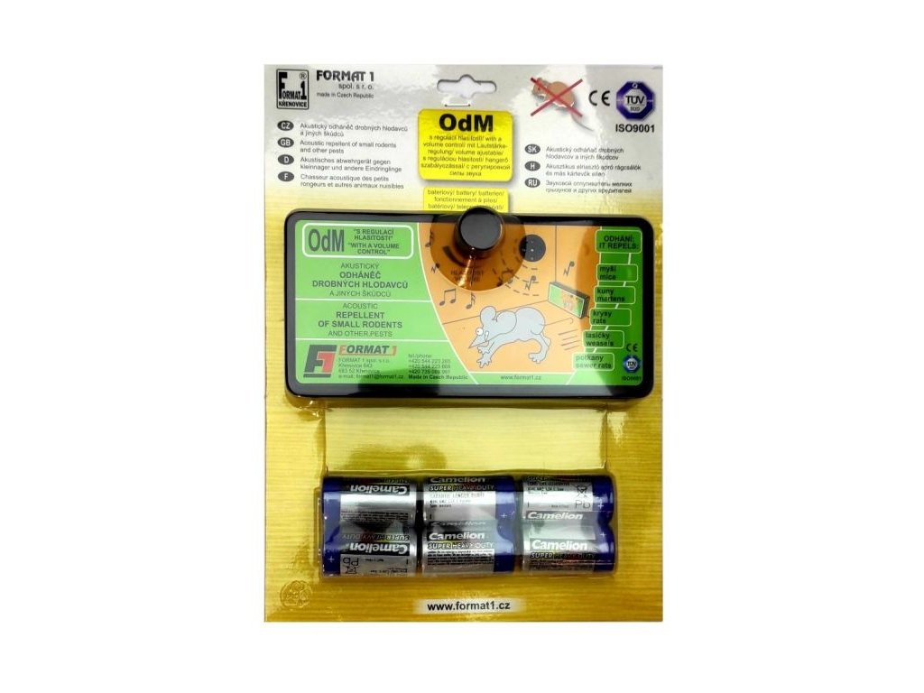 Odpuzovač myší a kun FORMAT OdM regulovatelný, sada plašič + baterie
