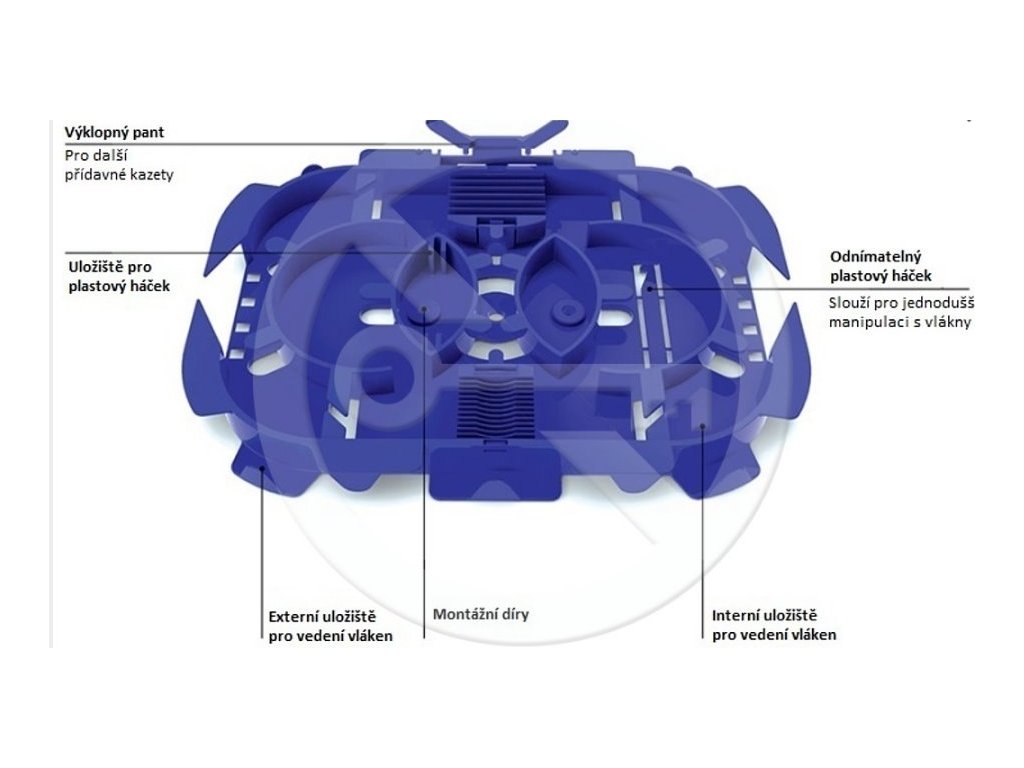 - Konstrukce: Dvoupatrové hřebínky pro efektivní vedení vláken