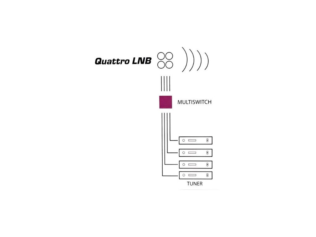 LNB pro příjem z jedné družice, čtyři výstupy pro připojení k multipřepínači.