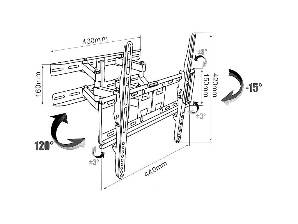 Standard VESA: 600 x 400, Zatížení (max.): 50 kg, Svislé otočení: 15 °, Horizontální otočení: 180 °, vysunutí až 58cm