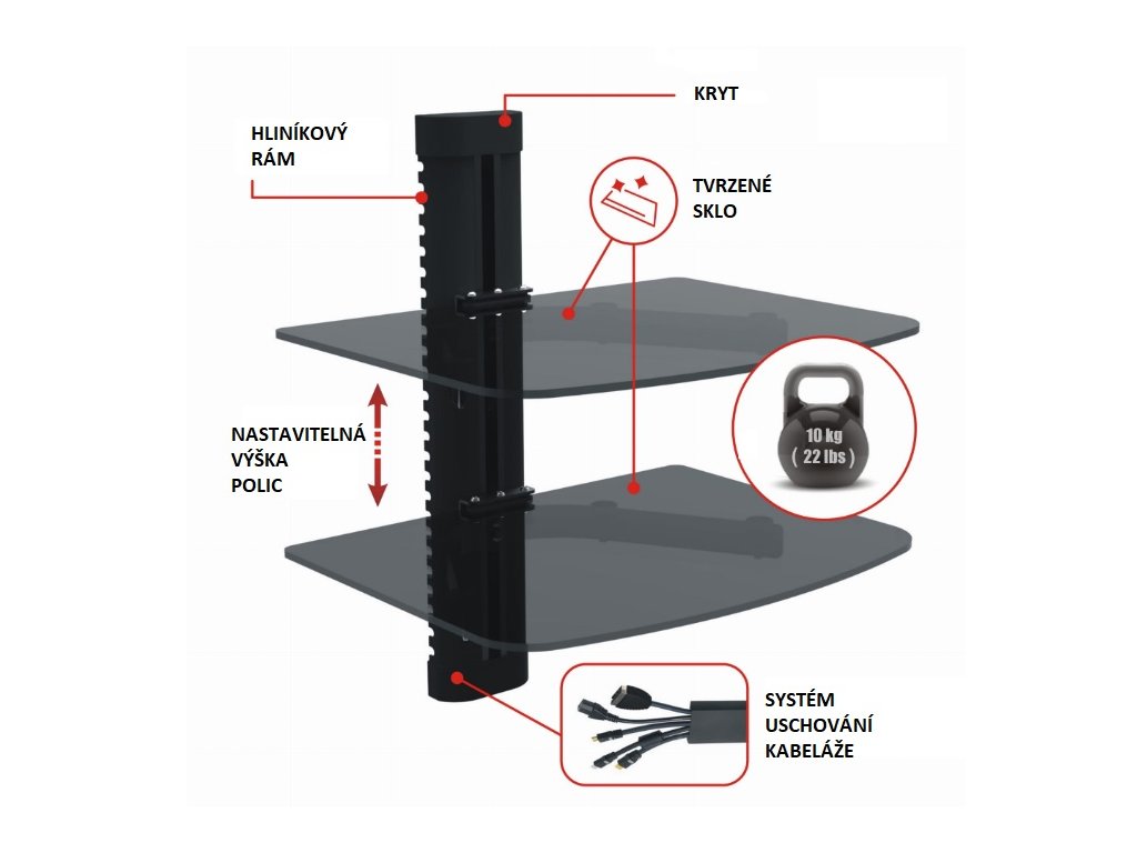 OPTICUM polička dvojitá pod TV 360x250x432mm