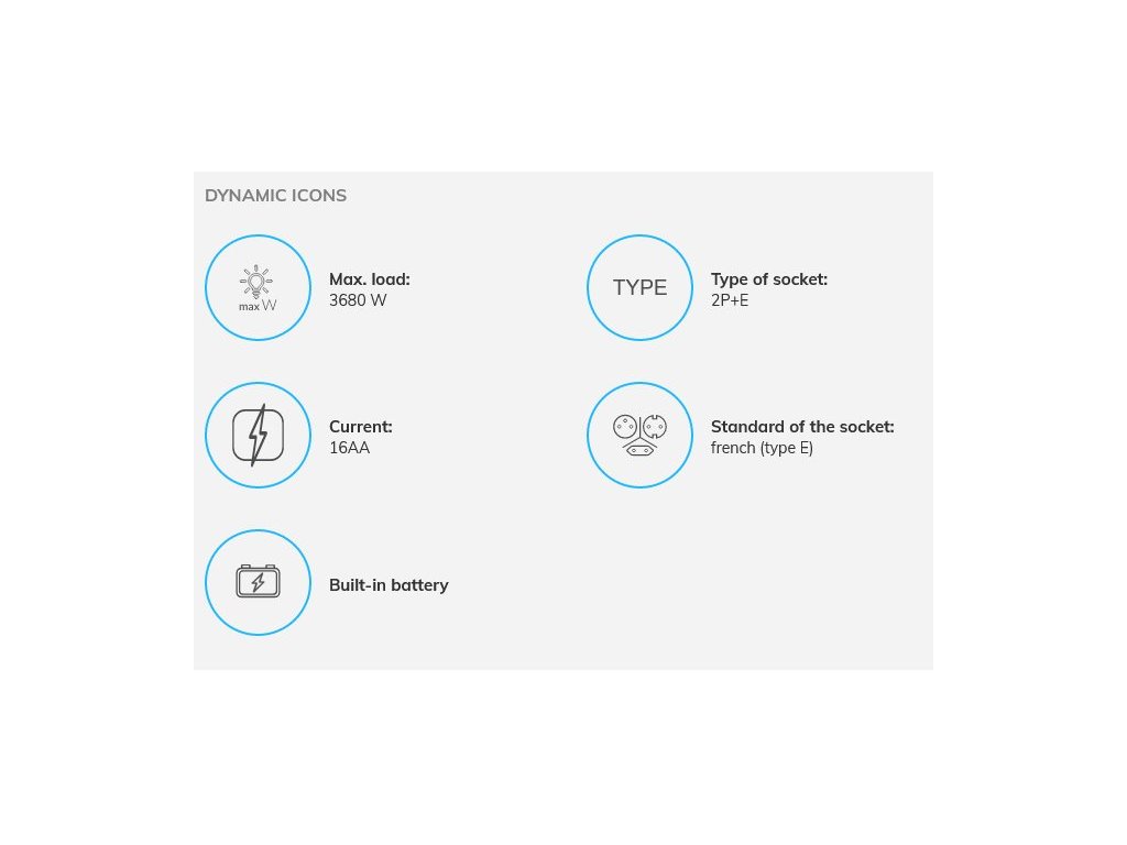- Typ zásuvky: 2P+E, francouzská (typ E)