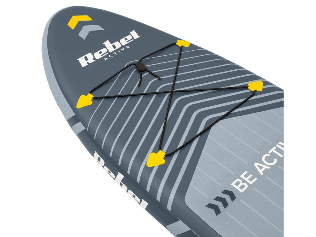 Stand-up paddleboard Rebel Active se vyznačuje pevnou a stabilní konstrukcí s technologií drop-stitch. Bez ohledu na vaši úroveň dovedností můžete bezpečně proplouvat vodou ve stoje i vsedě. Protiskluzová deska potažená 3mm silnou EVA pěnou poskytuje vynikající přilnavost, takže i intenzivní pádlování je hračkou.