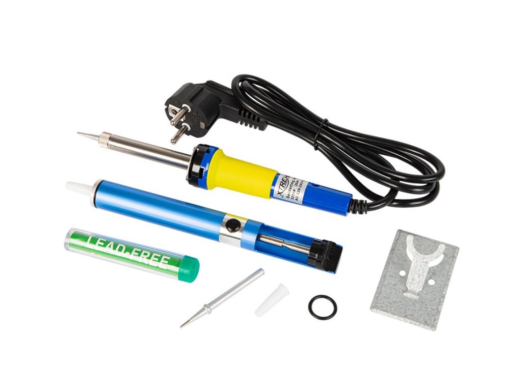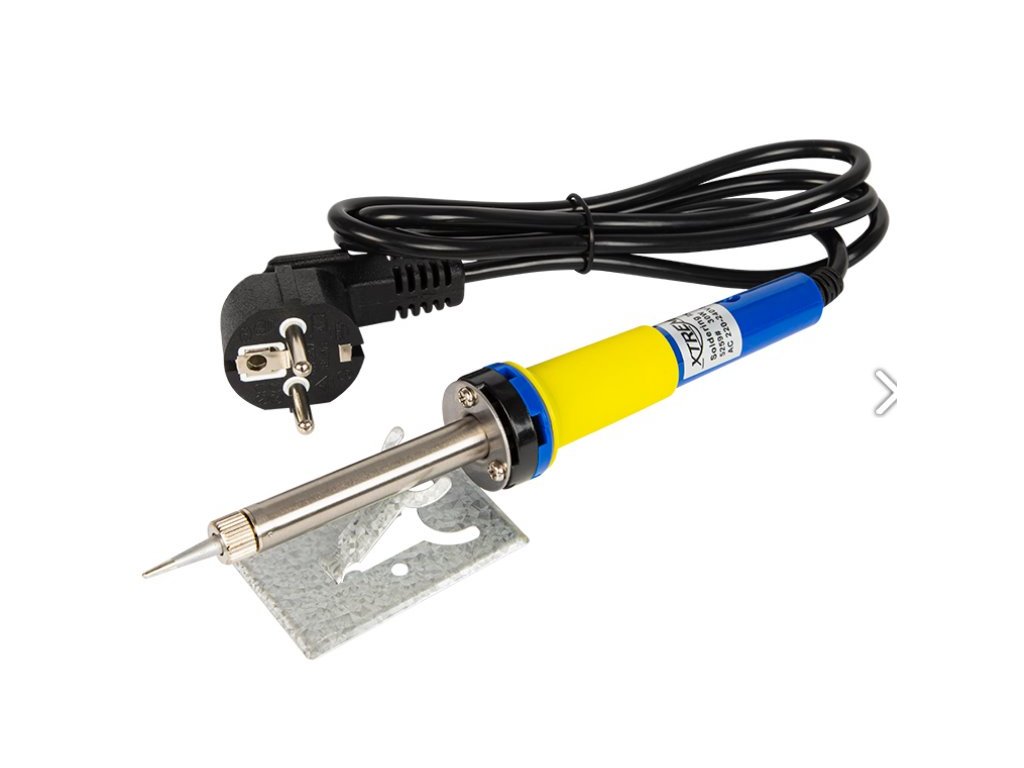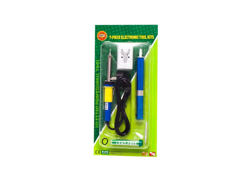 Pájecí sada pro pájení malých elektronických součástek. Topné těleso v páječce bylo nahrazeno tlustým ocelovým hrotem. Určeno pro hobby práci i profesionální použití. Rukojeť potažená gumovým krytem zajišťuje bezpečnost a komfort práce. Sada obsahuje: páječku, pájecí přísavku s hroty, stojan na páječku, cín v lahvičce.