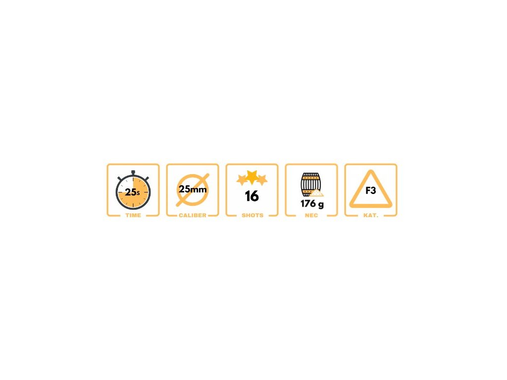 Sexy mise 16SH je rovný ohňostroj o počtu 16-ti výmetníků. hňostroj je ideální a rychlou volbou pro zpestření různých večírků či například oslav narozenin a svateb.
