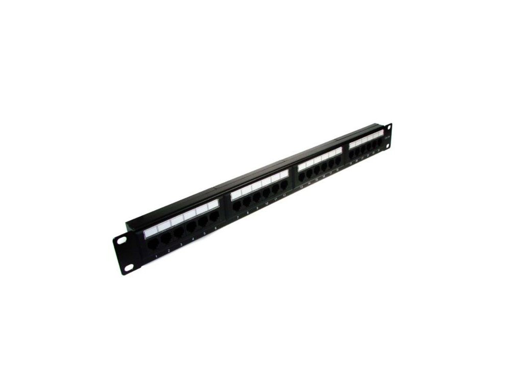 Patch panel s 24 porty UTP5e v provedení 1U 19" bez police. Ideální pro efektivní připojení a organizaci datových kabelů.