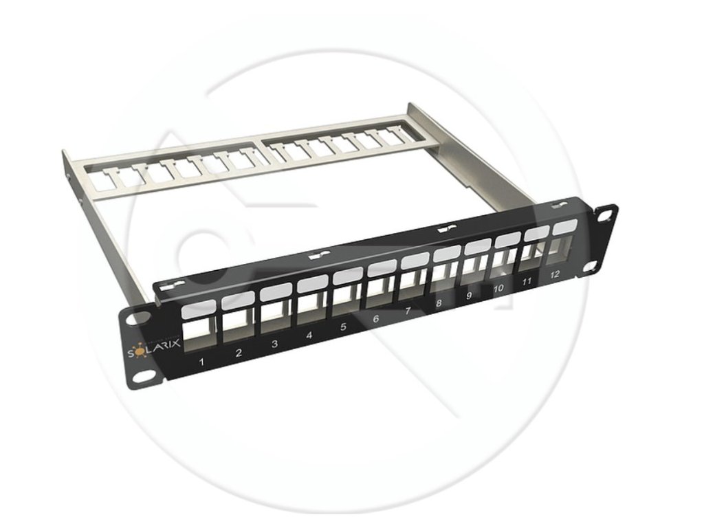 Patch panel Solarix 10" modulární neosazený 12 portů 1U SX12M-0-STP-BK-UNI-N-10 nabízí **univerzální** a **modulární** řešení pro instalaci 12 keystonů. Je navržen pro **snadnou montáž** a **efektivní organizaci** datových kabelů.