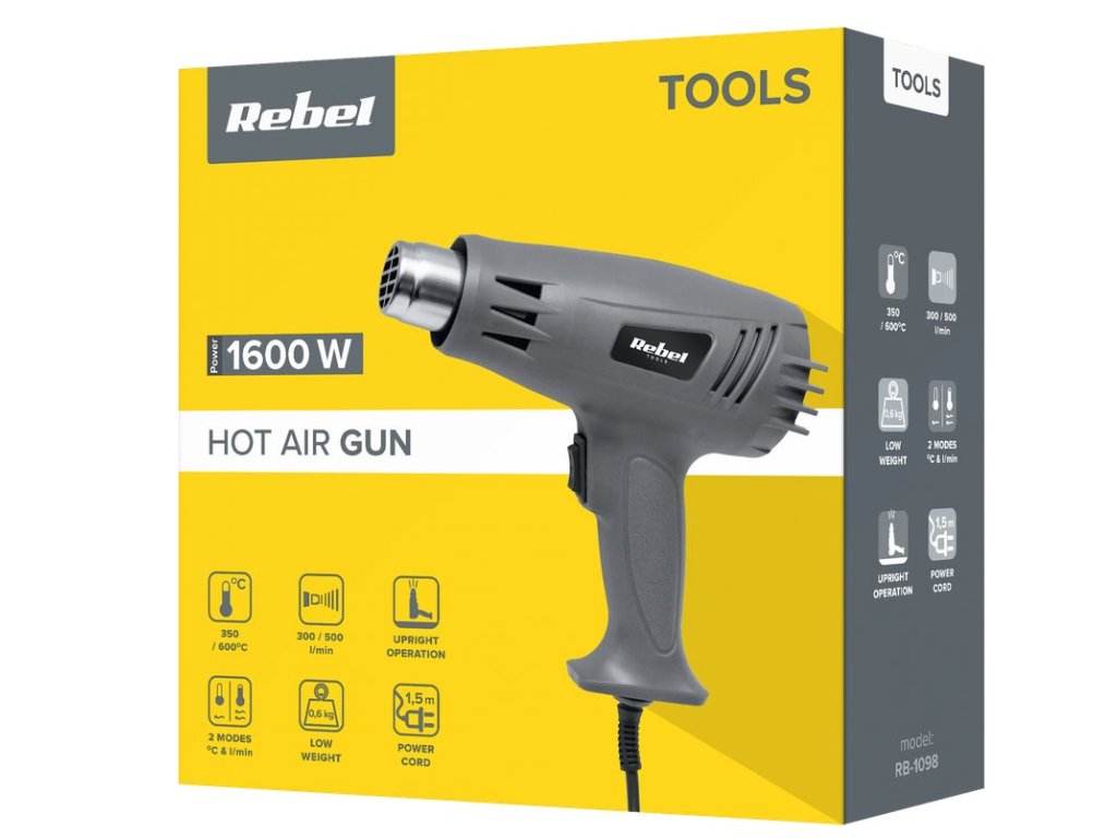 Pistole horkovzdušná REBEL TOOLS RB-1098, 1600W