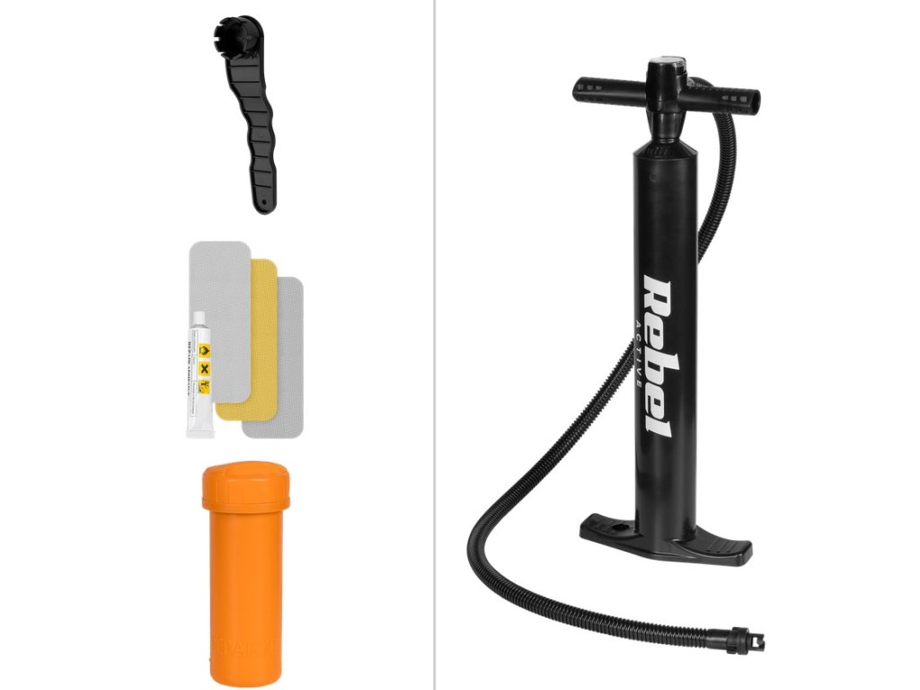 SUP prkno RBA-4517 je dodáváno s ruční pumpou s tlakoměrem, která umožňuje rychlé a efektivní nafouknutí. Prkno je navíc dodáváno s opravným prvkem. Sada se skládá z klíče na ventilek, tří opravných záplat a lepidla, abyste mohli rychle vyřešit jakékoli problémy a vrátit se k pádlování!