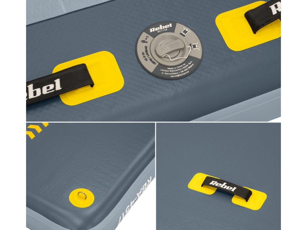 Vodní plošina Rebel Active se vyznačuje robustní a stabilní konstrukcí vyrobenou technologií drop-stitch. Protiskluzová deska potažená 3mm silnou EVA pěnou poskytuje vynikající přilnavost.
