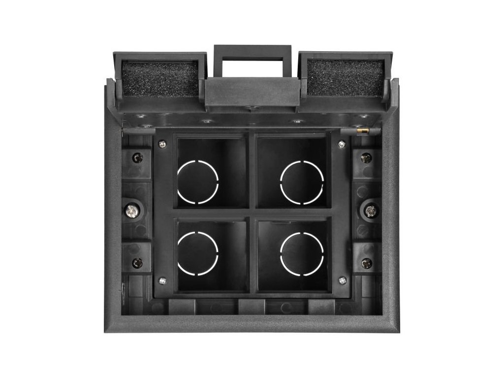 Podlahové pouzdro pro zásuvkové moduly je perfektní volbou pro kanceláře, konferenční místnosti a další vnitřní prostory. Tento výrobek vám přináší funkčnost a estetiku v jednom, neboť jeho obdélníkový tvar a elegantní tmavě šedá barva se hodí do jakéhokoli moderního interiéru. Pouzdro ORNO OR-GP-9201/P je navrženo pro instalaci až čtyř modulů OR-GM-9010, které si můžete volně přizpůsobit podle svých potřeb. Můžete umístit čtyři moduly 45x45 mm nebo osm modulů 22,5x45 mm, takže máte možnost kombinovat různé typy zásuvek.