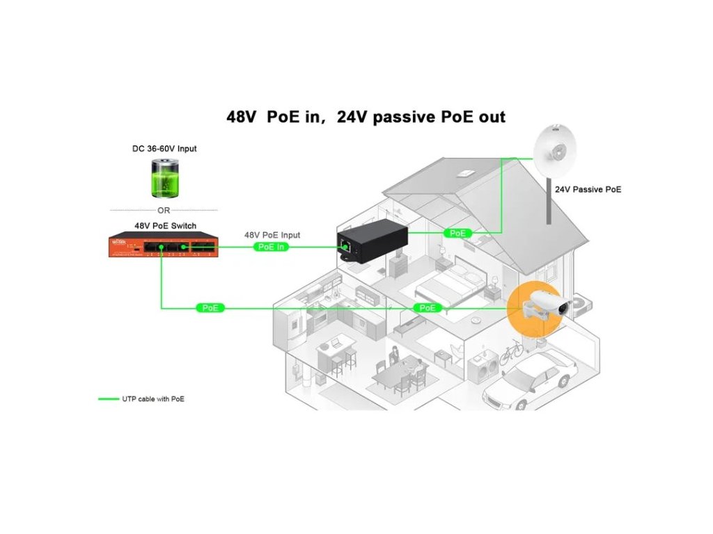 Vlastnosti PoE Konvertoru Wi-Tek WI-POE60-24V