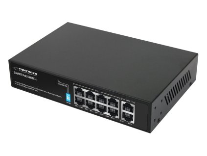 Switch Esperanza Matrix ENS108 je ideální pro IP monitorování s 8 PoE porty a výkonem až 120 W. Umožňuje přenos dat na vzdálenost až 300 m bez nutnosti konfigurace.